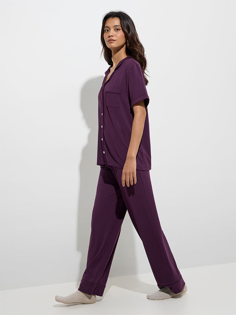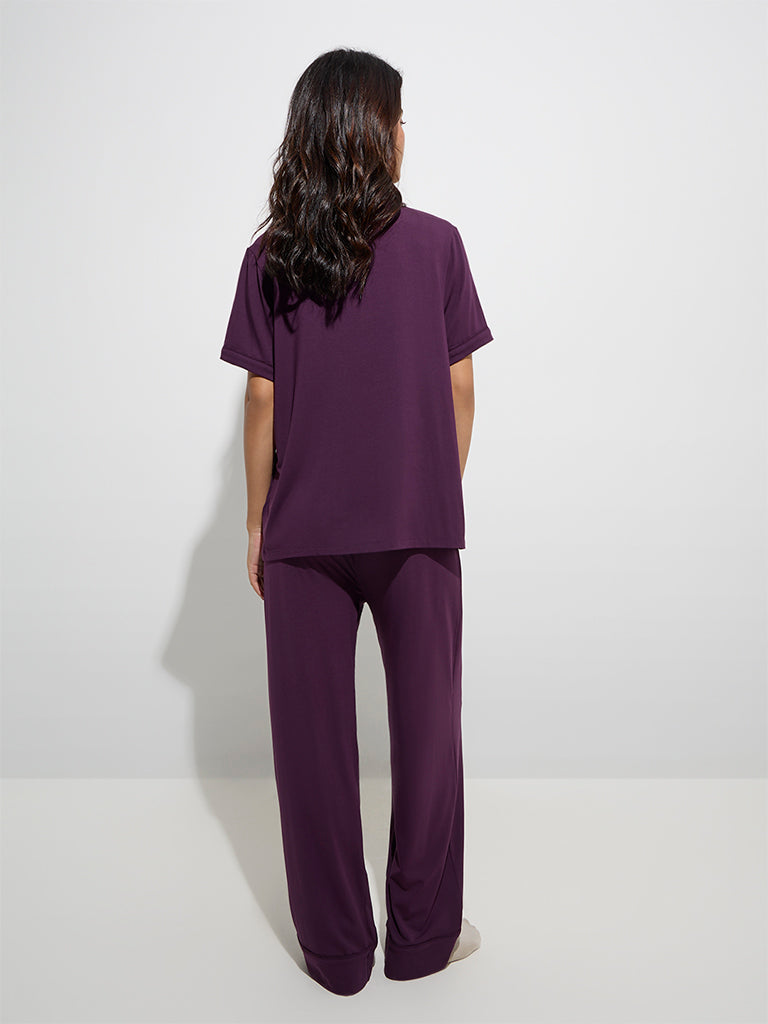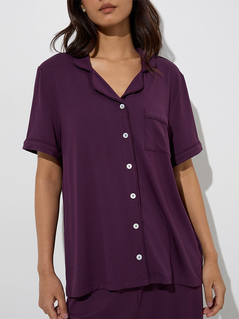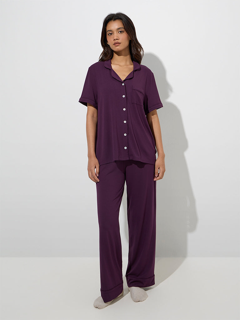 Your downtime just found its perfect match in this easy-going purple loungewear set from Wunderlove. Spun from an ultra-lightweight fabric for all-day comfort. the shirt features a notched collar that extends to a button placket. half sleeves. and a handy chest pocket. It’s paired with relaxed pyjamas designed with an elasticated waistband for a secure fit.