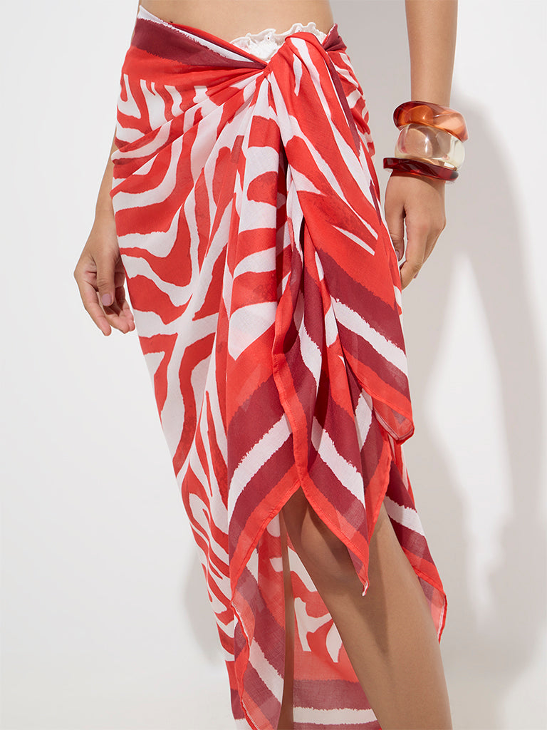 Wunderlove Red Abstract Design Beach Sarong in a Bag