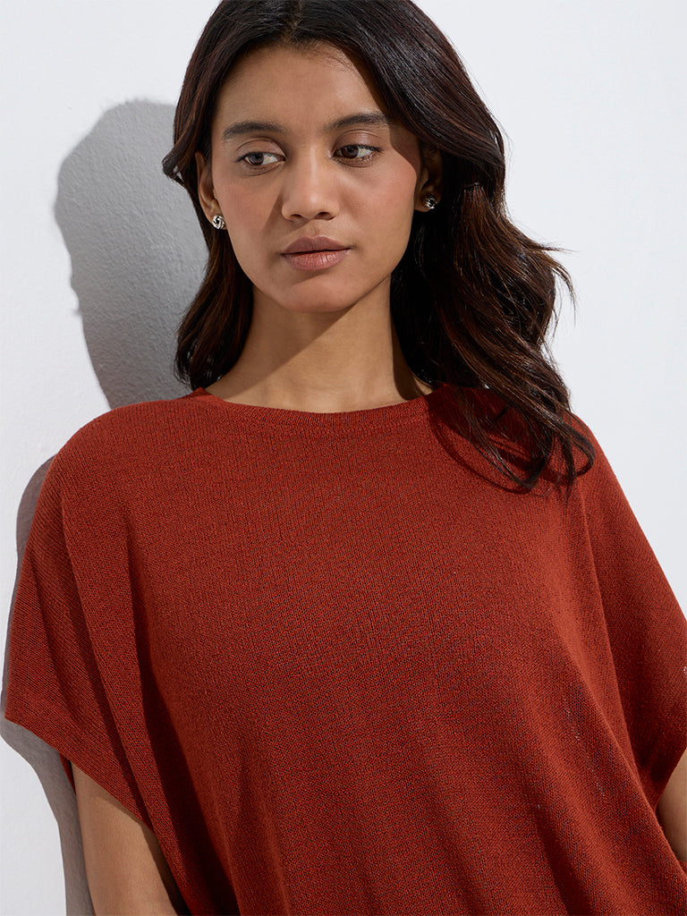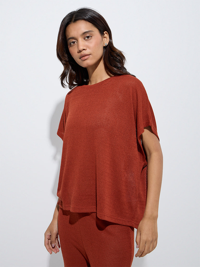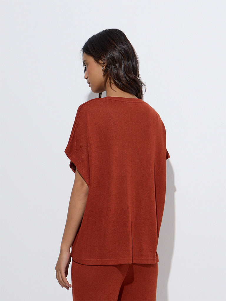 Wunderlove Rust Knit-Textured Lounge Top