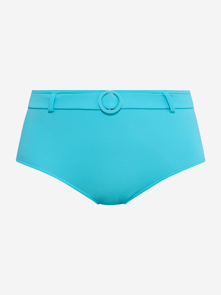 Wunderlove Swimwear Blue Solid High-Waist Full Briefs
