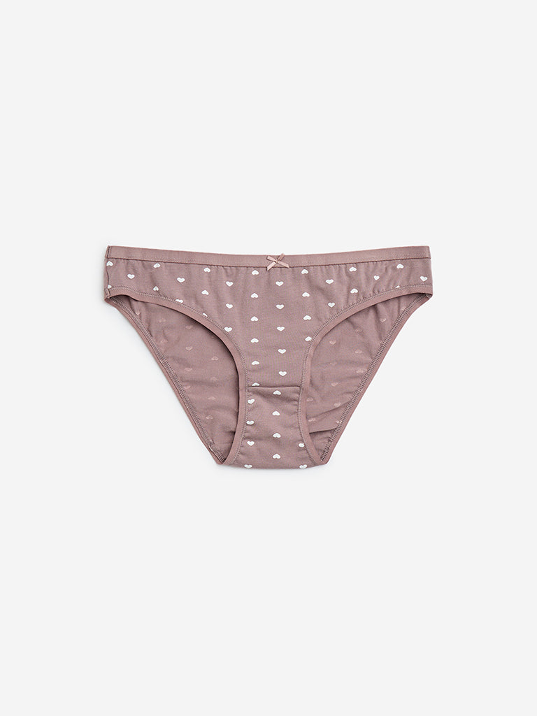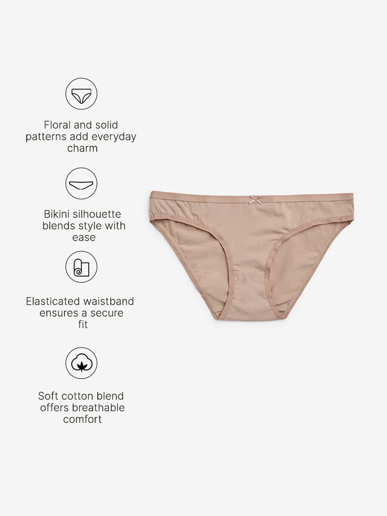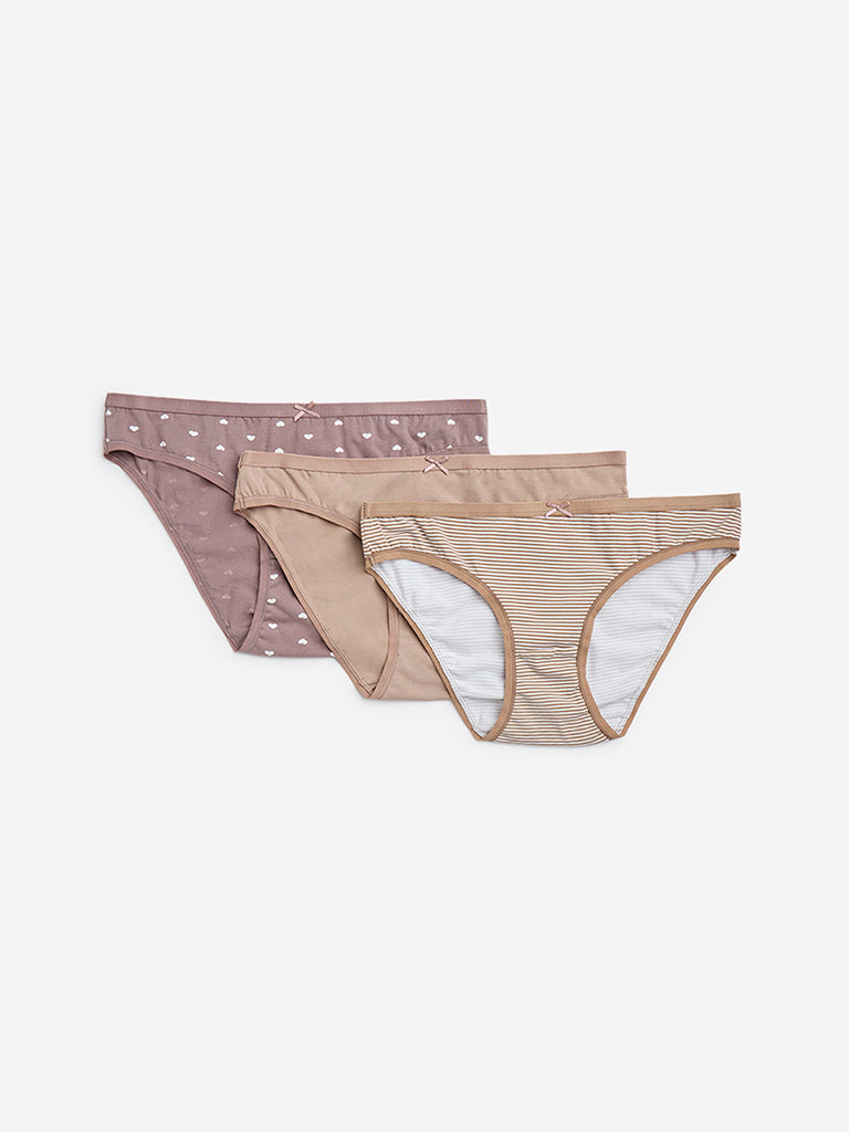 Wunderlove Taupe Print Cotton-Blend Bikini Briefs – Pack of 3