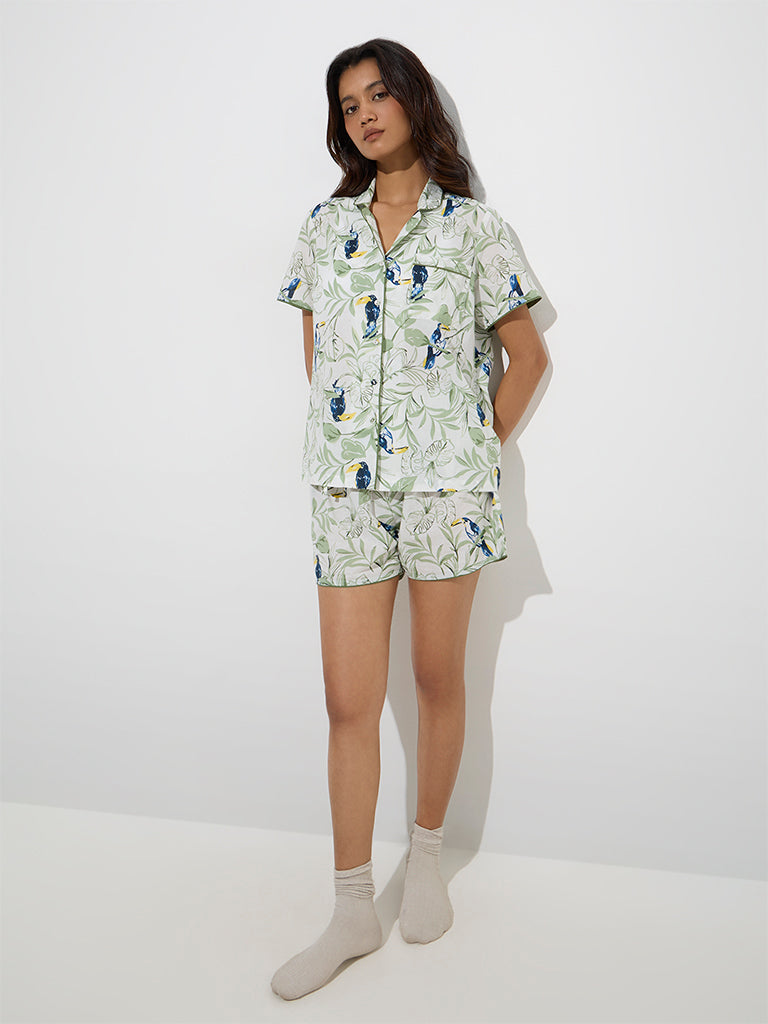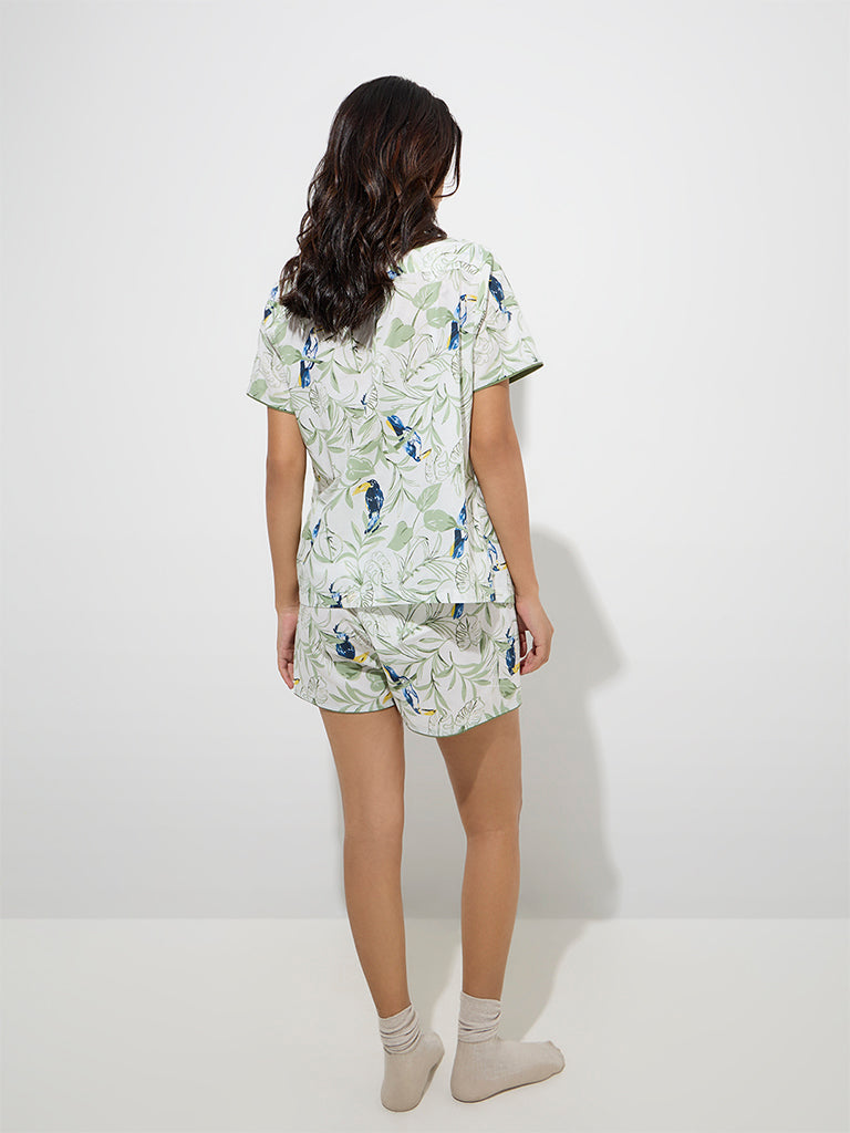 Wunderlove White Botanical Cotton Shirt and Shorts Set