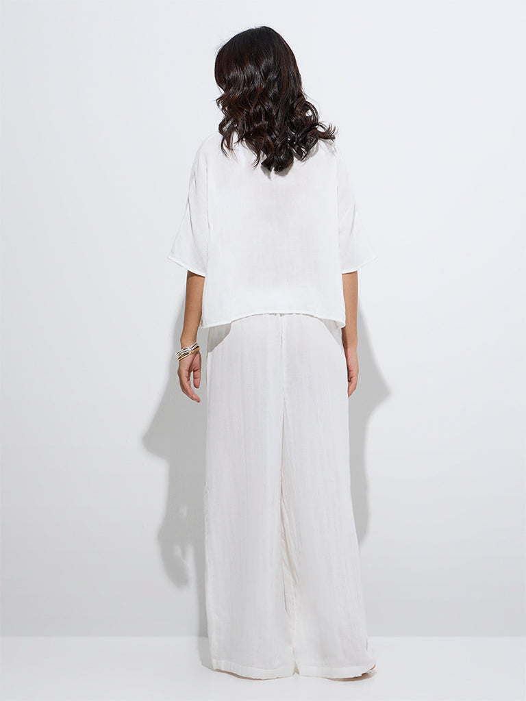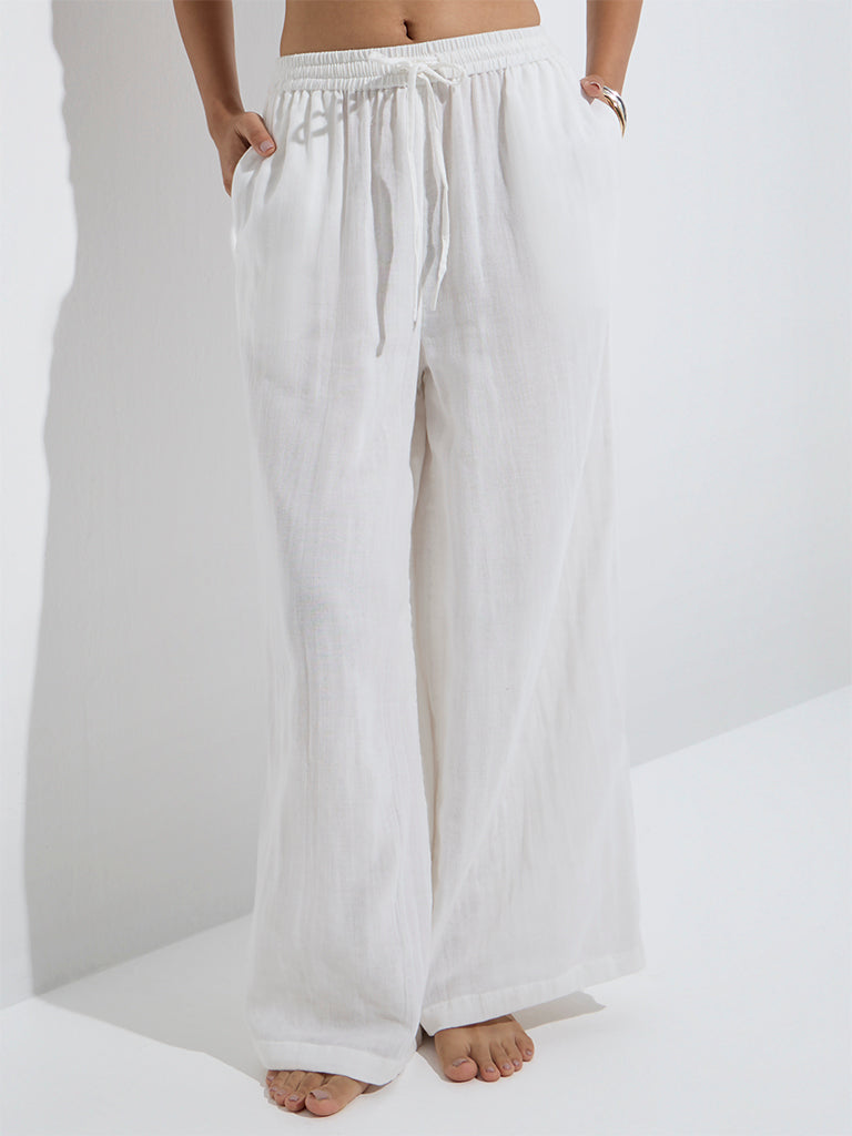 Wunderlove White Crinkle High-Rise Cotton Beach Pants
