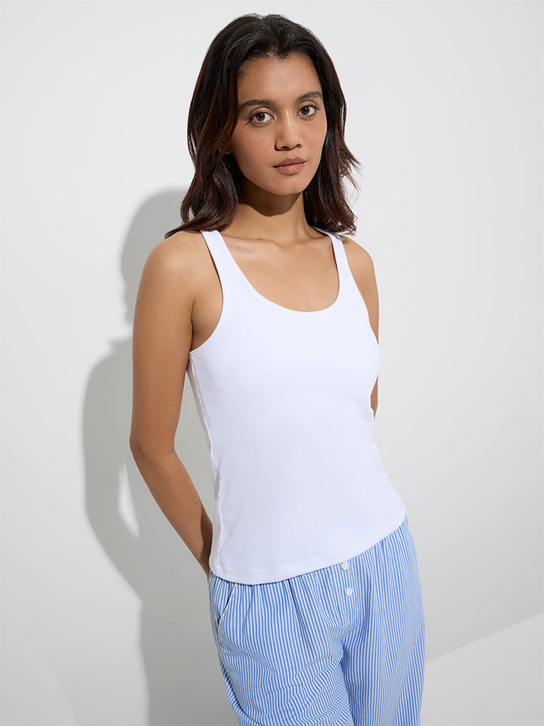 Update your essentials with this white hidden camisole from Wunderlove. a go-to piece for warm days and effortless layering. Spun from a ribbed-textured fabric. it feels soft against the skin while offering a flattering stretch. The scoop neck and sleeveless design keep it classic and versatile.