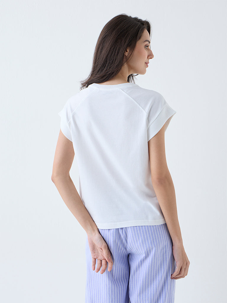 This white t-shirt from Wunderlove embraces a minimal aesthetic for timeless appeal. Styled with a round neck and raglan sleeves. it’s an effortlessly versatile piece for relaxed days at home.