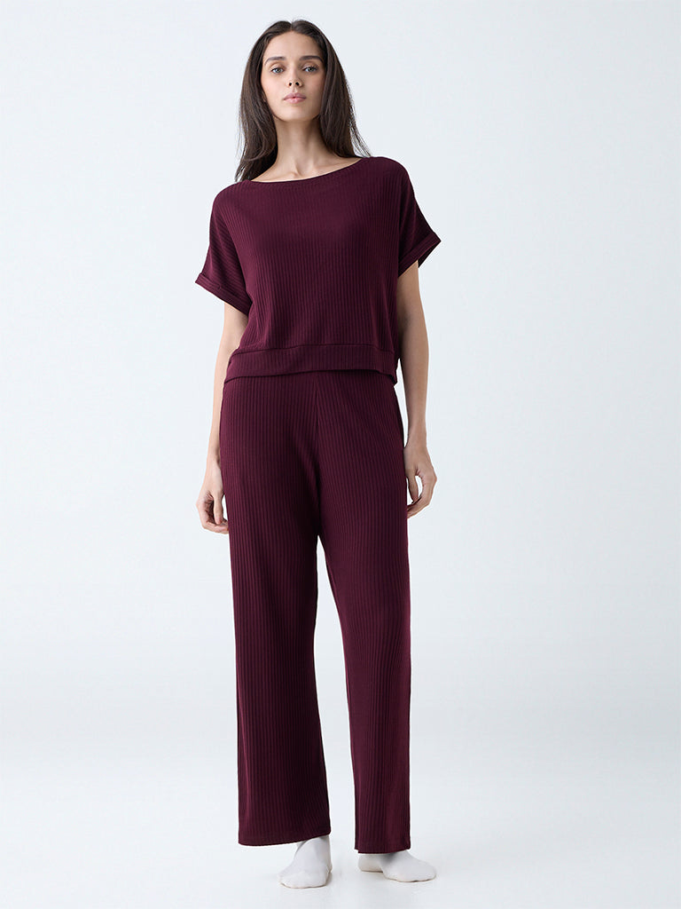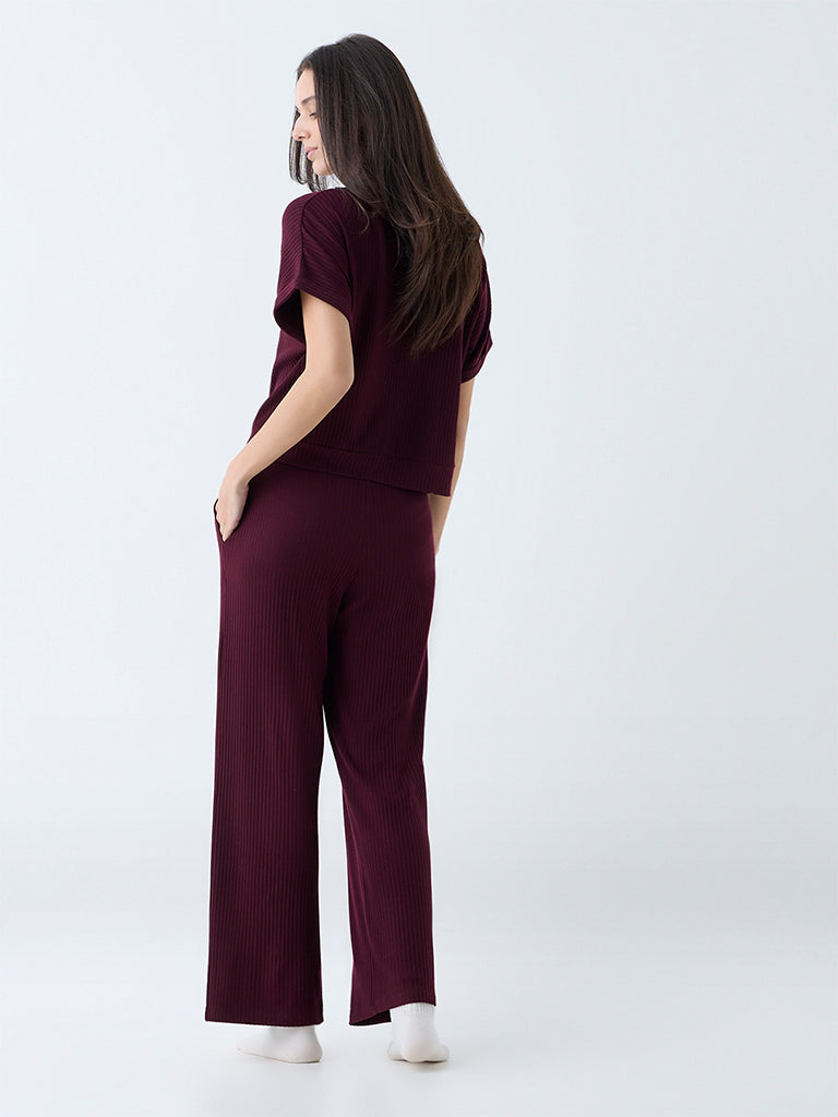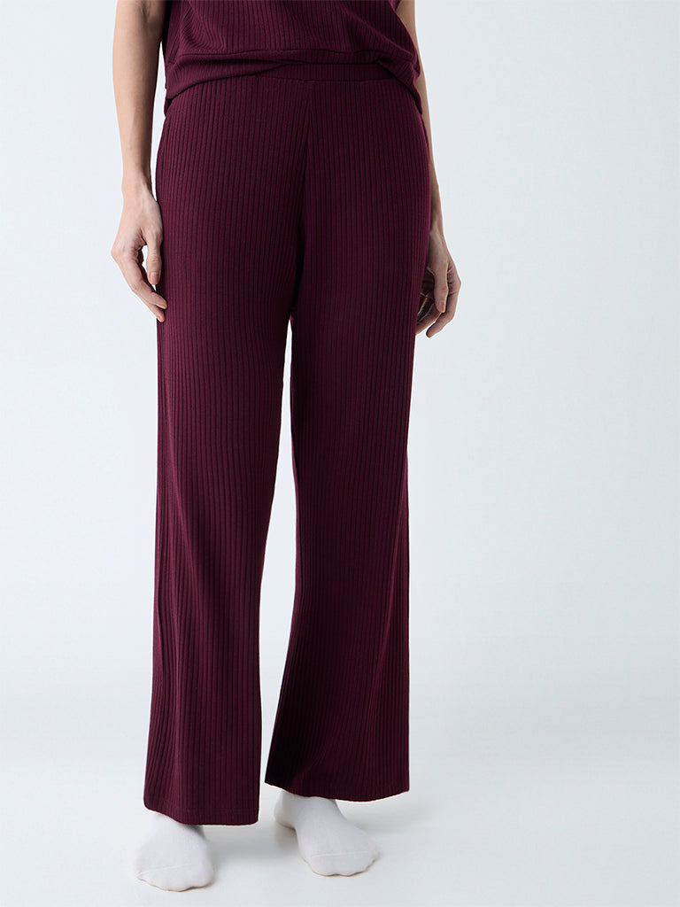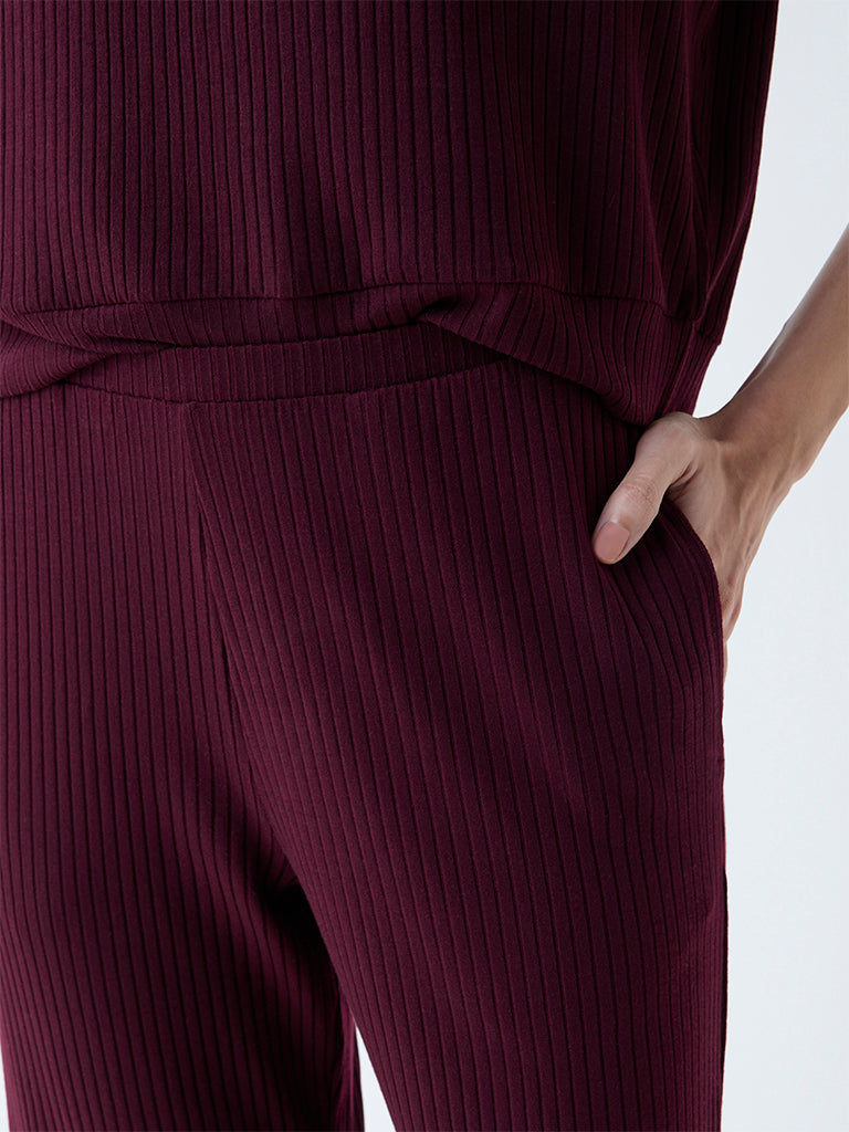 Wunderlove Wine Ribbed-Textured High-Rise Pants