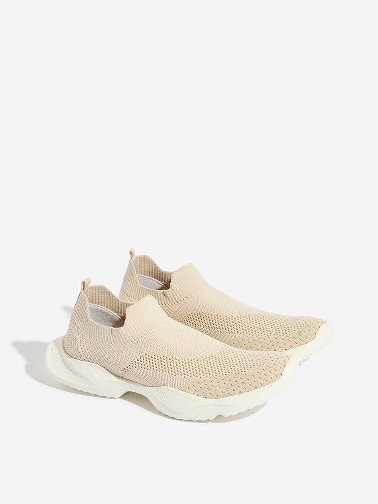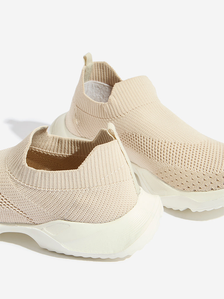 Yellow brings you these beige shoes. designed with a knit-textured exterior for a modern touch. The stretchable mouth ensures a snug fit. while the soft insole provides lasting comfort. Finished with a textured. rubber outsole. they offer flexibility and grip for effortless movement.