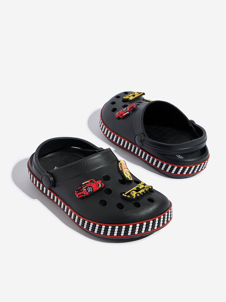 These black clogs by Yellow are a fun and practical choice for your little one. Featuring a breathable perforated exterior and playful applique detailing. these clogs combine style with functionality. The slingback design ensures a secure and comfortable fit. while the soft insole provides cushioning for all-day wear. Complete with a textured outsole for added grip. these clogs are perfect for outdoor adventures or casual playtime.