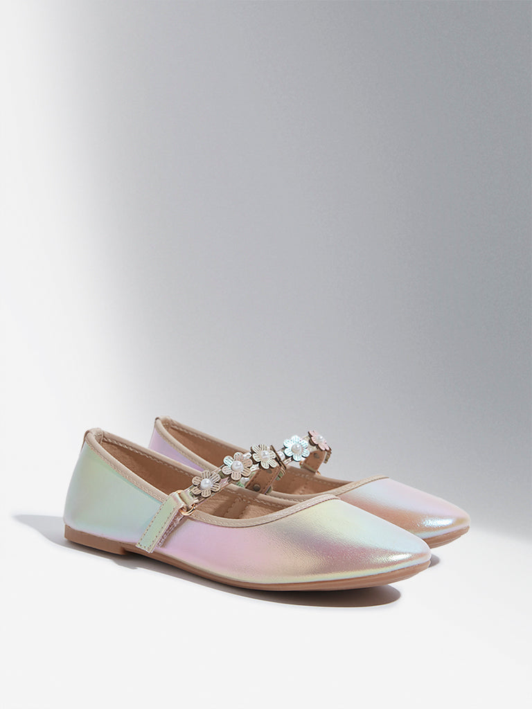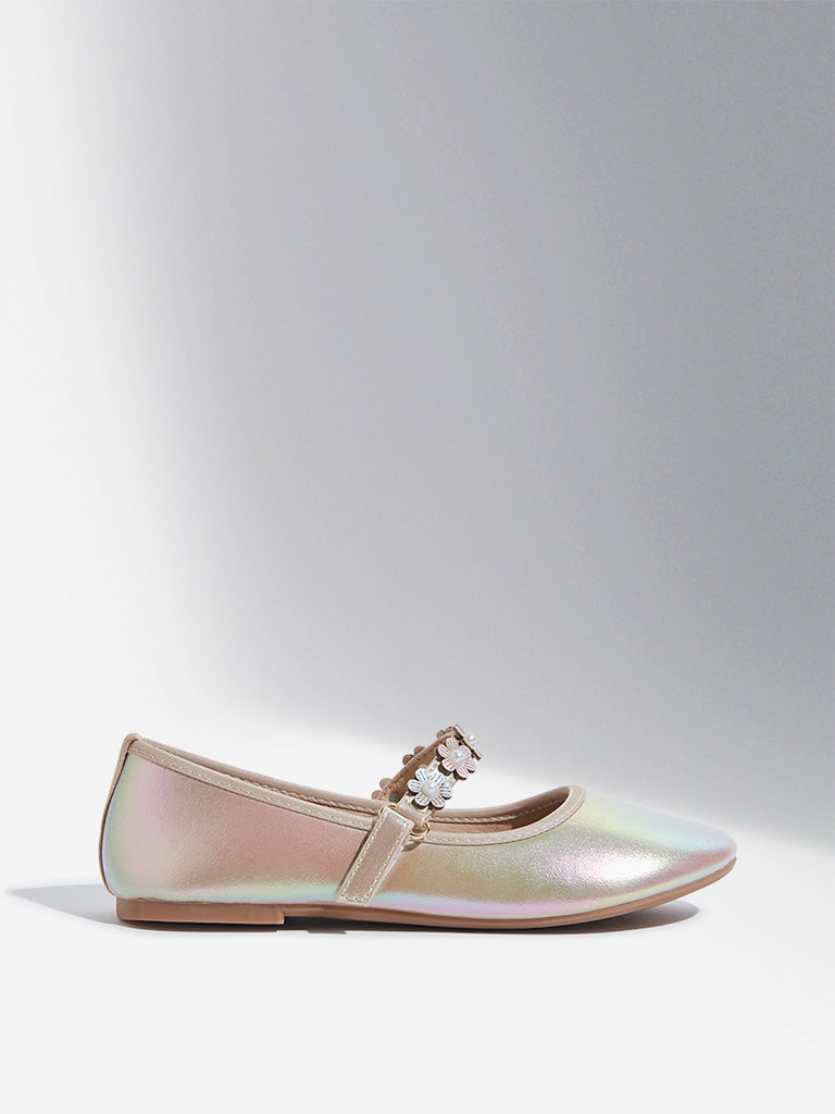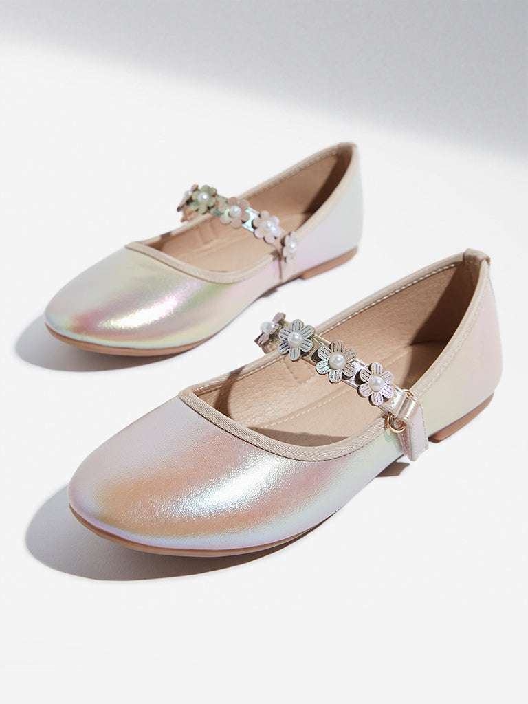 Step into elegance with these gold Mary Jane shoes from Yellow. Adorned with delicate floral appliqu?? details. these shoes feature a classic Mary Jane design with a secure strap and a comfy cushioned insole. Perfect for adding a touch of charm to any special occasion outfit.