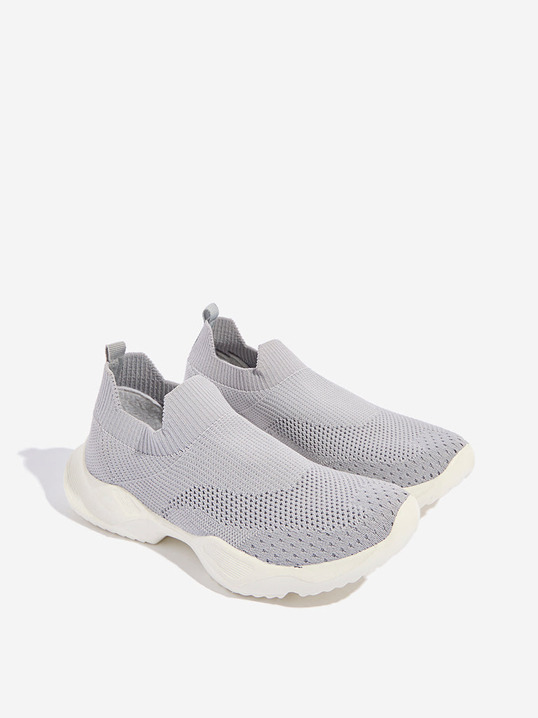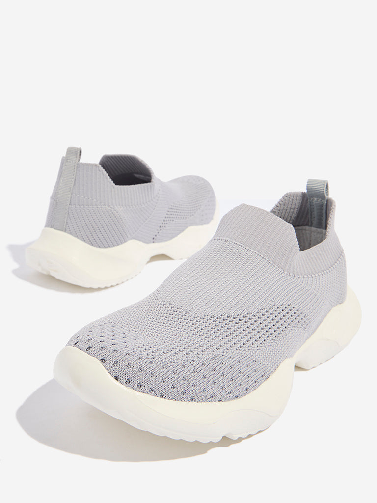 Yellow Grey Knit-Textured Slip-On Shoes