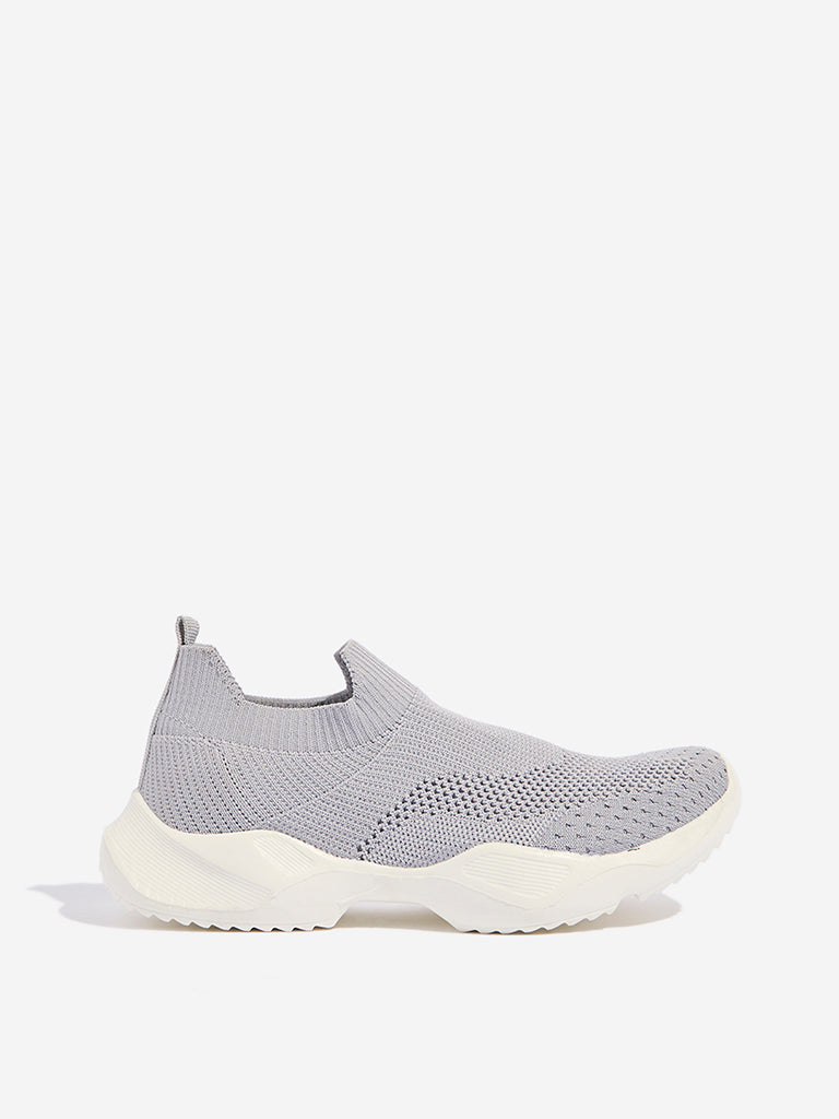 Yellow presents these grey shoes featuring a soft and stretchable exterior for a comfortable fit. The easy slip-on design ensures effortless wear. while the soft insole adds comfort. The high-sole outsole provides excellent grip and traction. making them perfect for all-day wear.