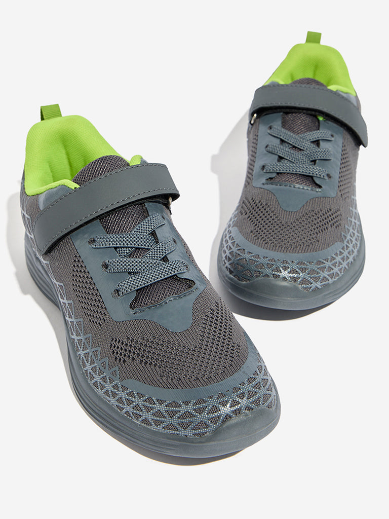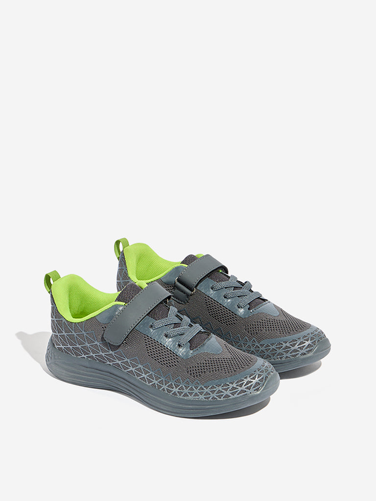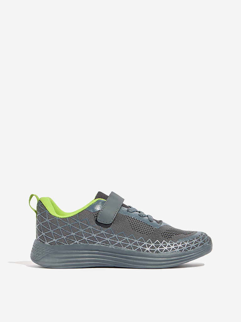 Amp up your little one’s style with these grey sneakers from Yellow. Built with a breathable mesh upper. they fuse sporty performance with urban edge. The lace-up front is reinforced with a wide buckle strap for a secure. custom fit. Finished with a cushioned sole and durable tread. this pair promises all-day comfort and grip with every step.