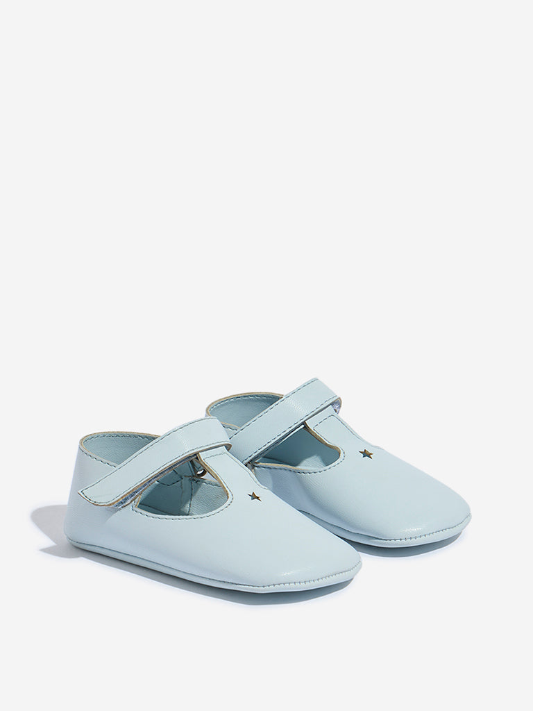 Yellow presents these light blue shoes. a playful yet practical addition to your footwear collection. Designed with charming star-shaped cut-outs in the upper. they bring a touch of fun to every step. The attached velcro belt ensures a secure and adjustable fit. while the soft insole offers lasting comfort. Complete with a sturdy outsole for reliable support. these boot sandals are perfect for active days or casual outings. combining style and functionality effortlessly.