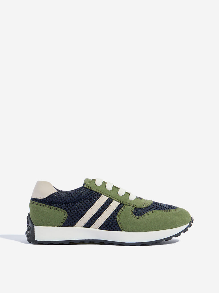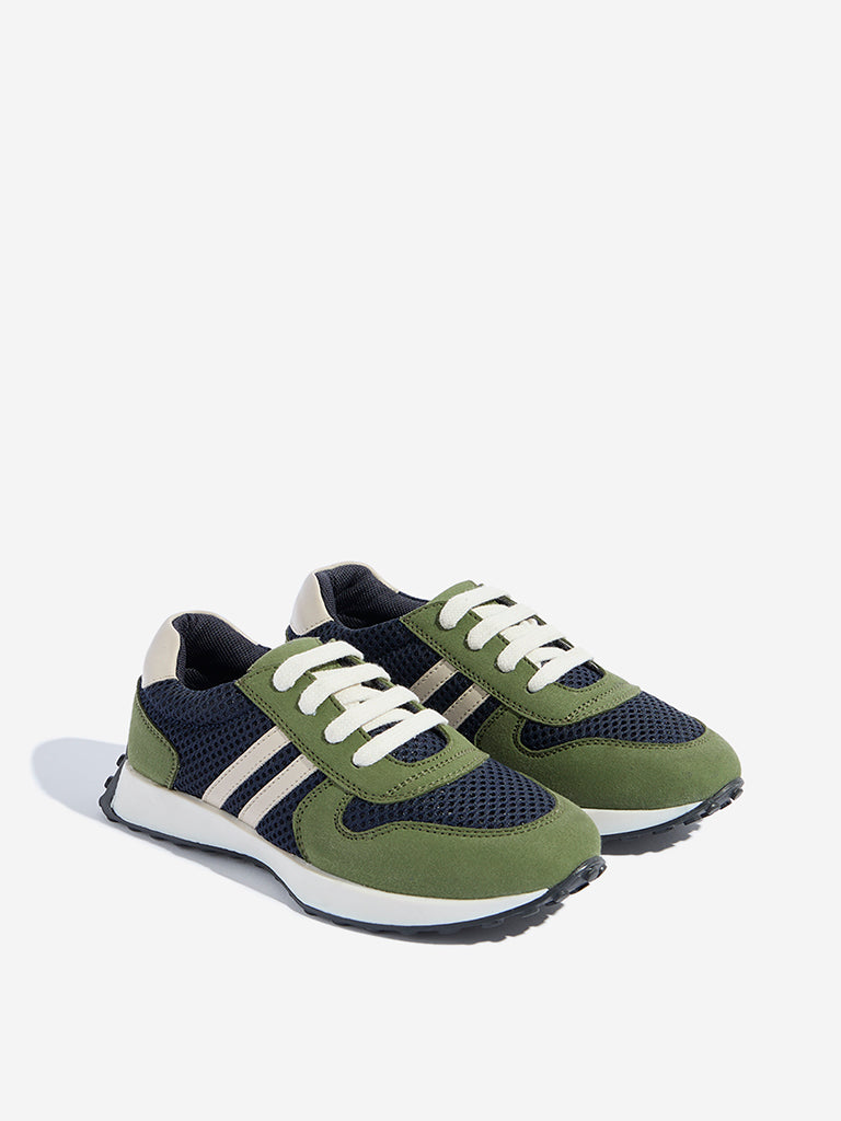 Yellow showcases these olive sneakers showcasing mesh exteriors for good air circulation. These shoes are built with a cushioned footbed along with a sturdy midsole and slip-resistant outsoles for stability and grip.