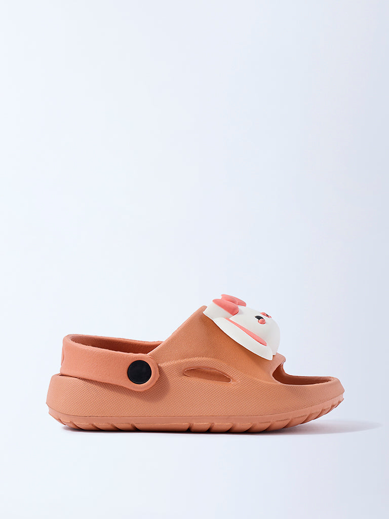 Add a dose of fun to your little one’s everyday adventures with these peach clogs from Yellow. Topped with adorable bunny appliques. they feature a back strap for a snug fit. The lightweight build and soft insole promise lasting comfort. while the textured outsole offers steady grip with every step.