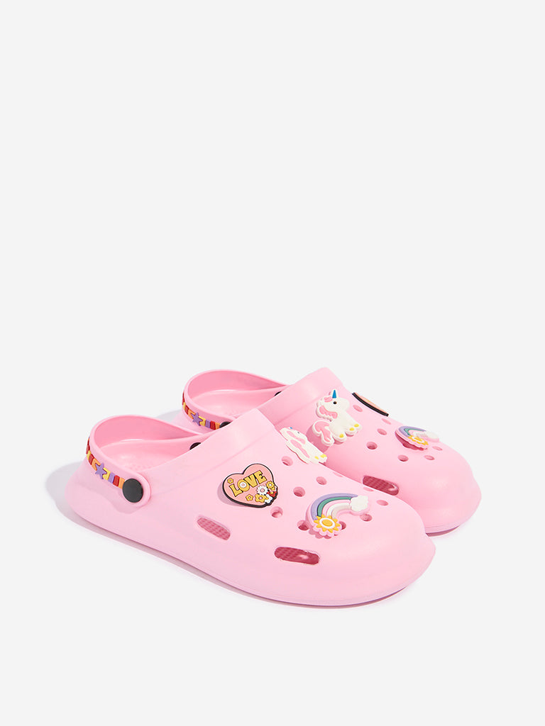 Yellow launches these pink clogs adorned with unicorn-themed applique detailing. Made with water-resistant technology. it includes a perforated upper for breathability and slingback design for a proper fit. The soft insole and textured outsole ensures a great walking experience.