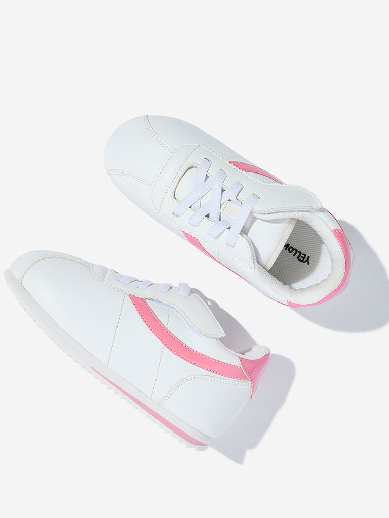 Let your little one step out in sporty style with these pink sneakers from Yellow . Designed with contrast side panels and a hint of pink on the outsole. this pair is finished with a classic lace-up closure and a cushioned insole for lasting comfort. The textured sole ensures better grip. making them perfect for active days out.