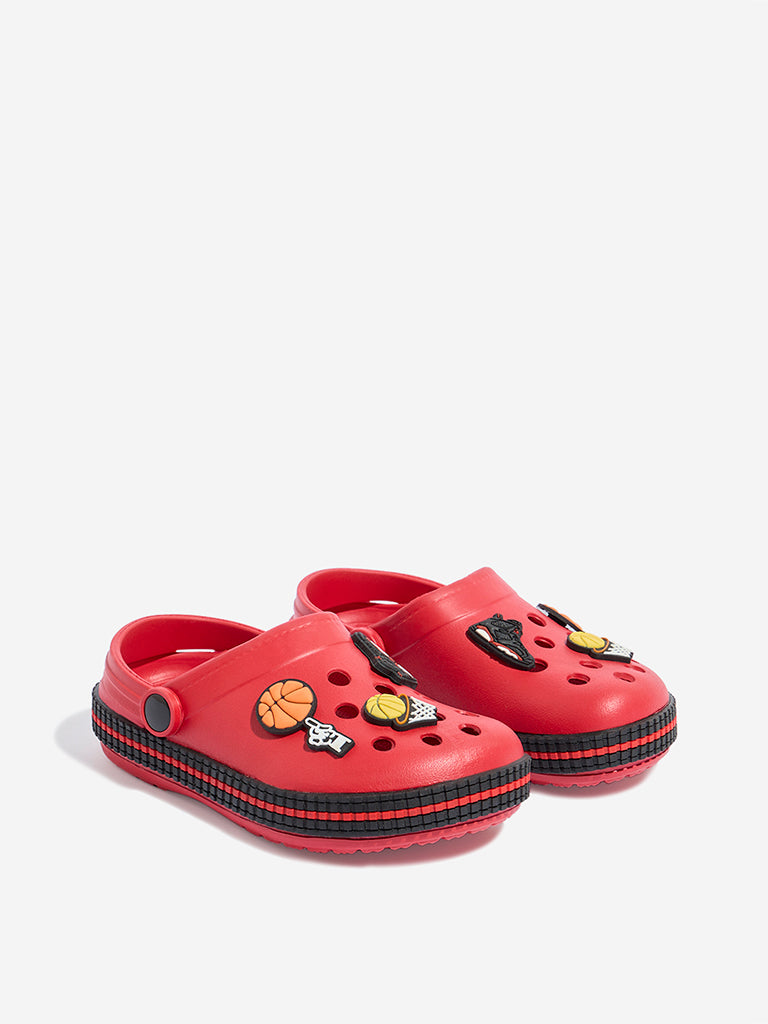 Yellow presents these red clogs with a perforated upper. featuring fun basketball-themed applique detailing. Designed with a slingback for a secure fit. they offer a soft. cushioned insole and a textured outsole for supreme comfort.