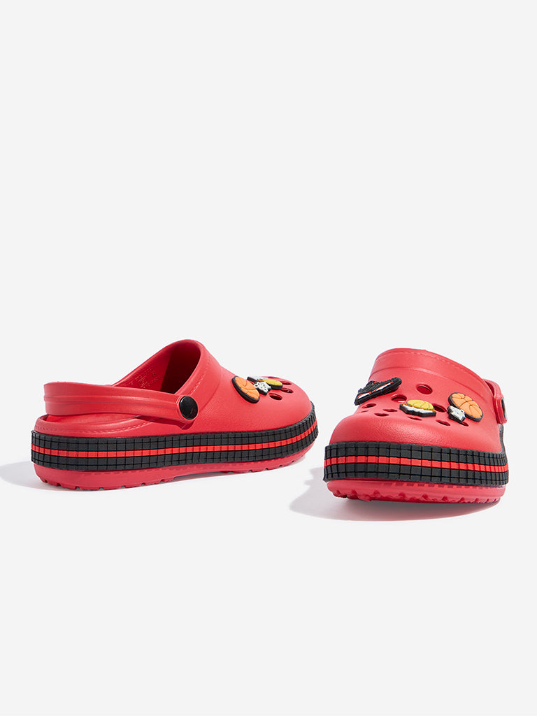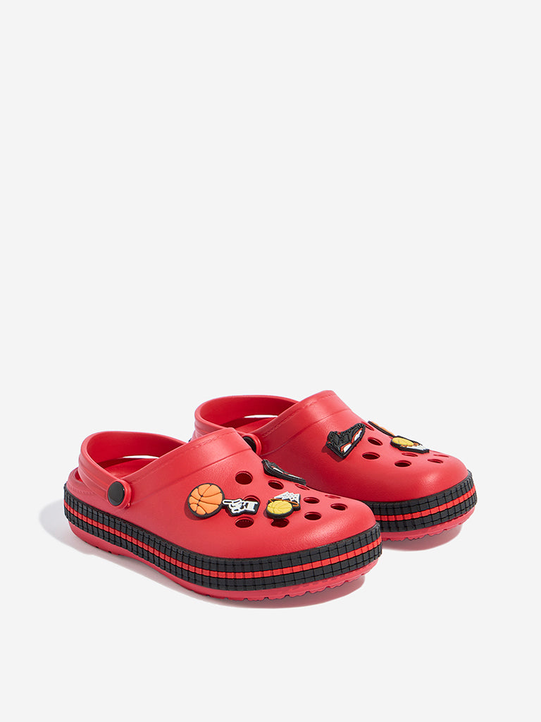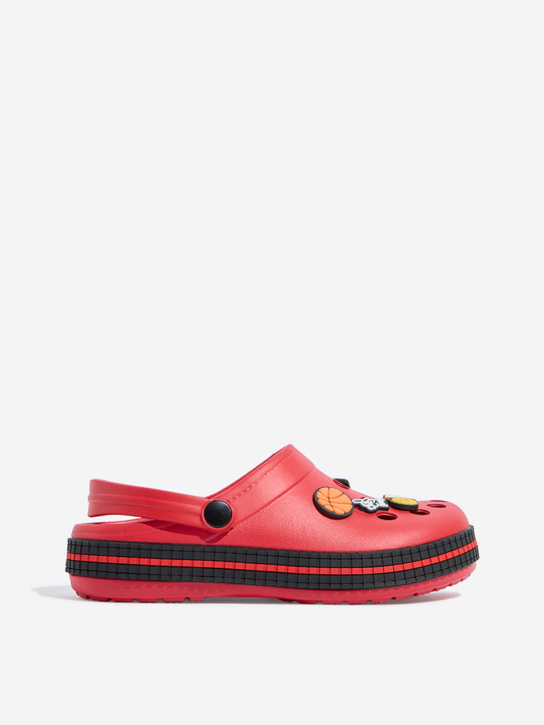 Yellow presents these red clogs with a perforated upper. featuring fun basketball-themed applique detailing. Designed with a slingback for a secure fit. they offer a soft. cushioned insole and a textured outsole for supreme comfort.