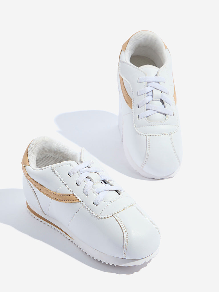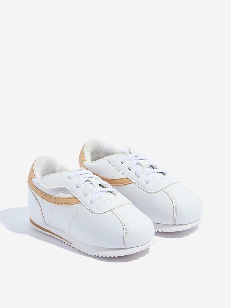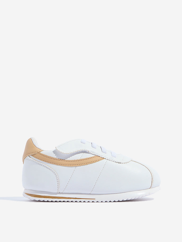 These white sneakers from Yellow are made for boys who like to keep it cool and comfy. Featuring soft suede accents and sporty side stripes. they’re perfect for everything from school days to play dates. The easy lace-up design keeps them snug and secure. while the cushioned insole and grippy sole make running around a breeze.