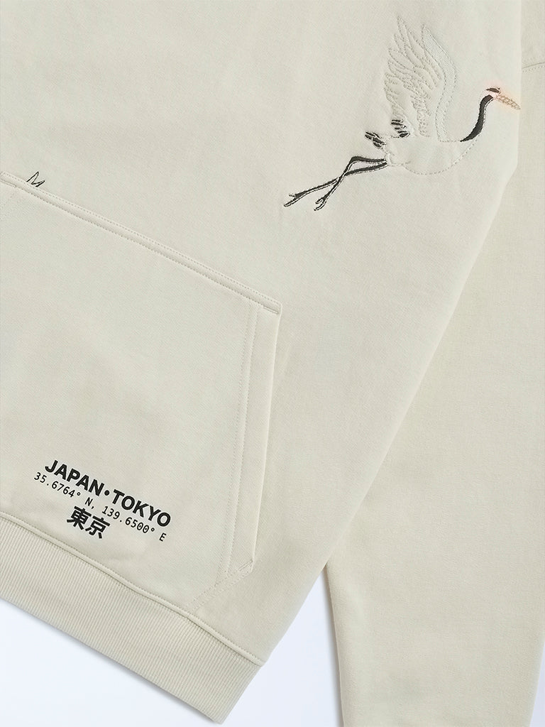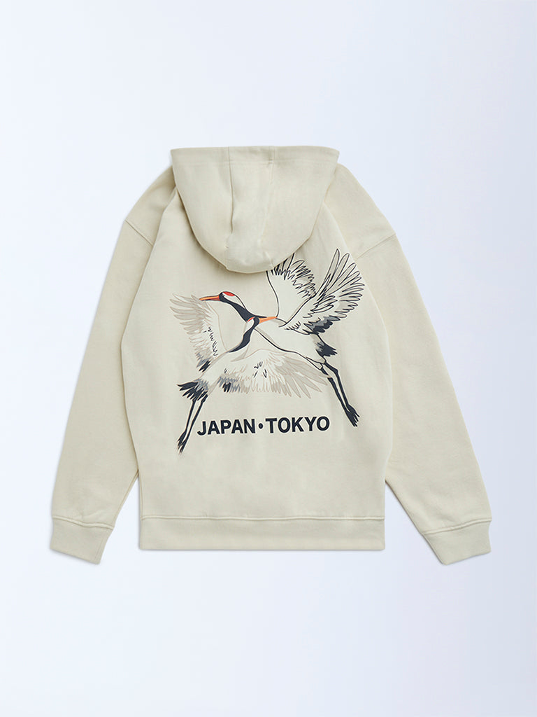 Y&F Kids Beige Bird Design Cotton-Blend Hoodie