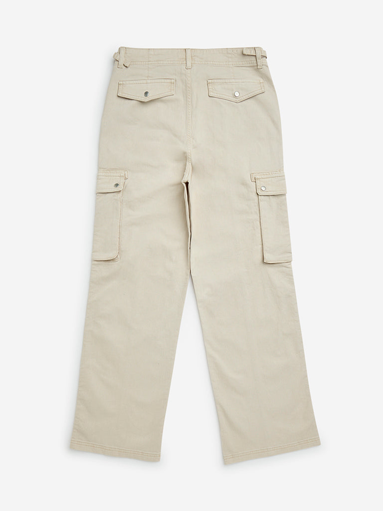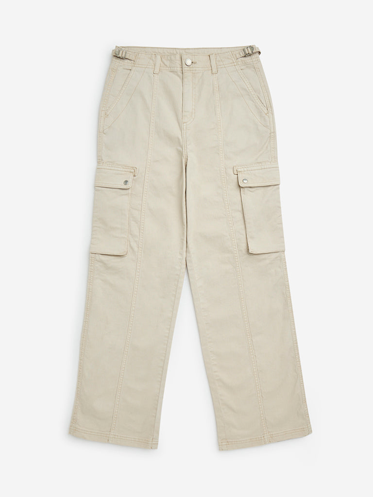 Y&F Kids Beige Cargo-Style Mid-Rise Cotton-Blend Pants