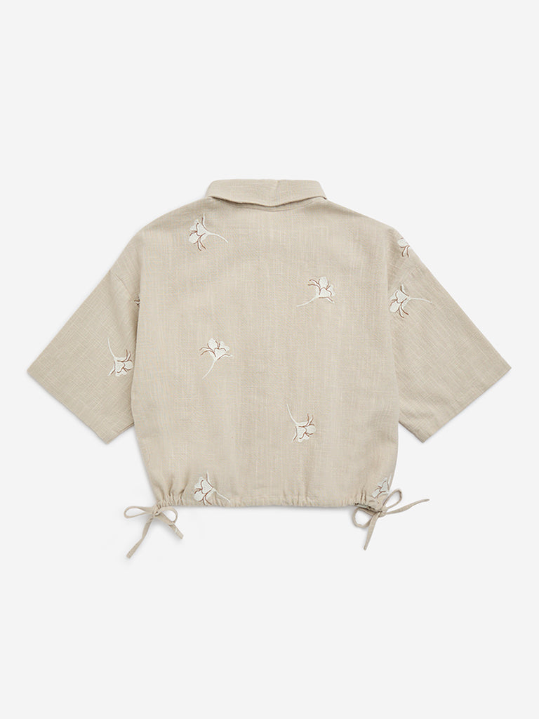 Y&F Kids Beige Floral Printed Cotton Shirt