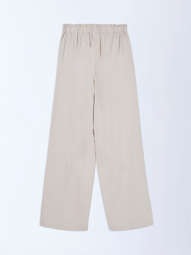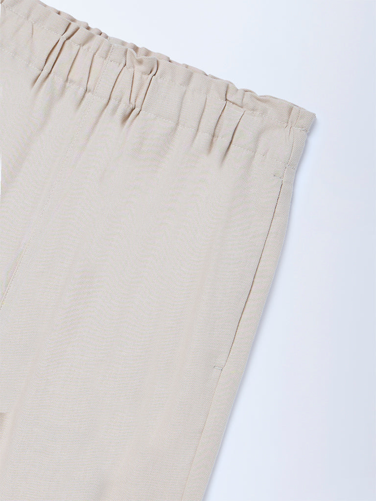 Y&F Kids Beige Mid-Rise Cotton-Blend Trousers