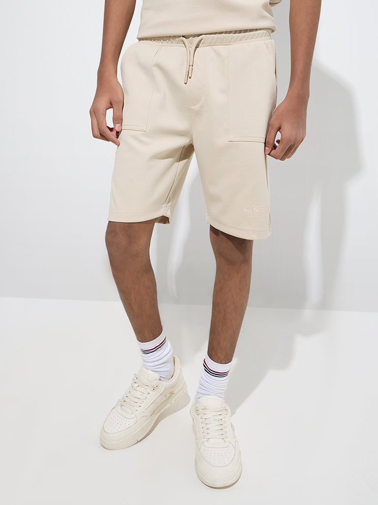 These beige shorts from Y&F Kids are woven from an ultra-lightweight fabric to keep your little one comfortable all day long. Featuring multiple pockets. they’re finished with an elasticated waistband and attached drawstrings for an adjustable fit.