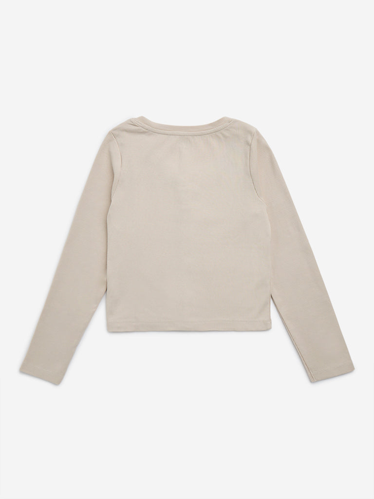 Y&F Kids Beige Ribbed Cotton-Blend T-Shirt