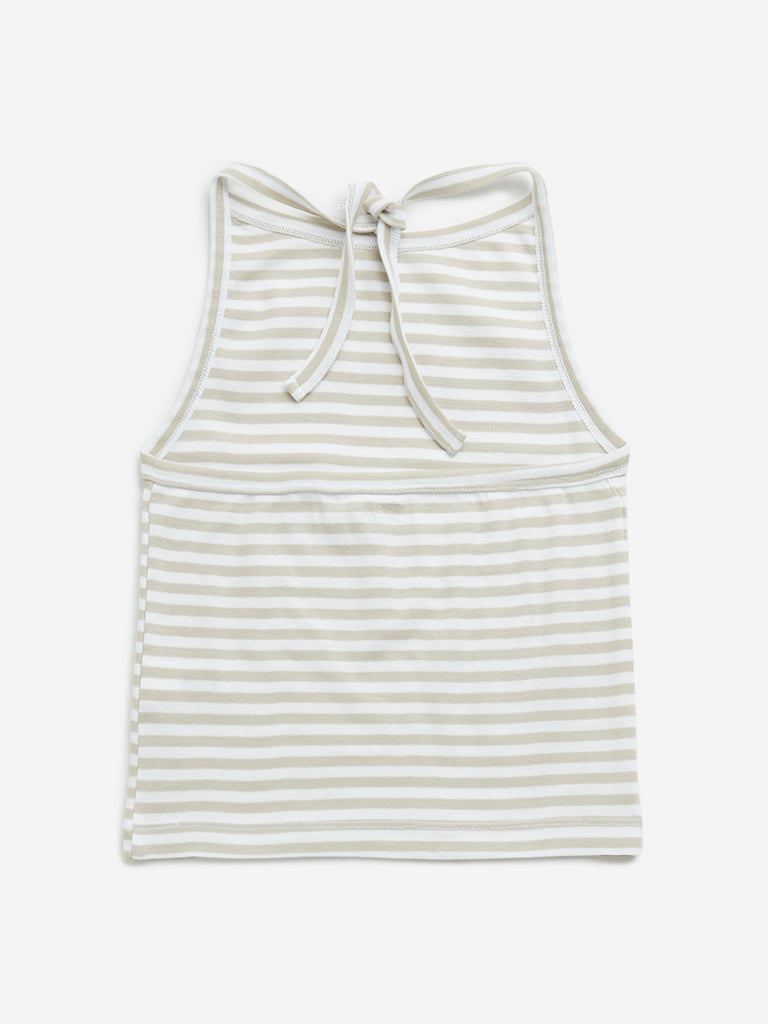 Y&F Kids Beige Striped Halter-Neck Cotton Top