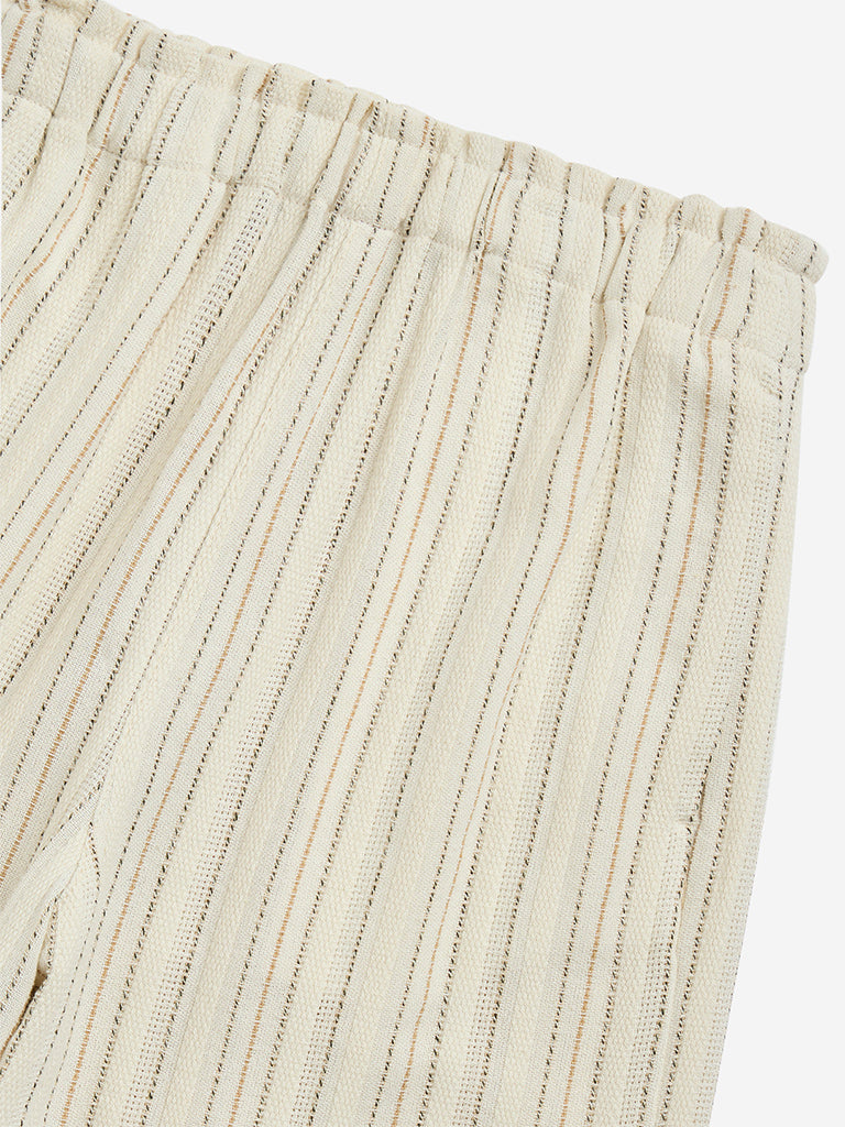Y&F Kids brings these beige pants. featuring stripes for a stylish touch. Crafted from a rich cotton blend. they are designed with a smooth elastic waistband and side pockets for added comfort and practicality.