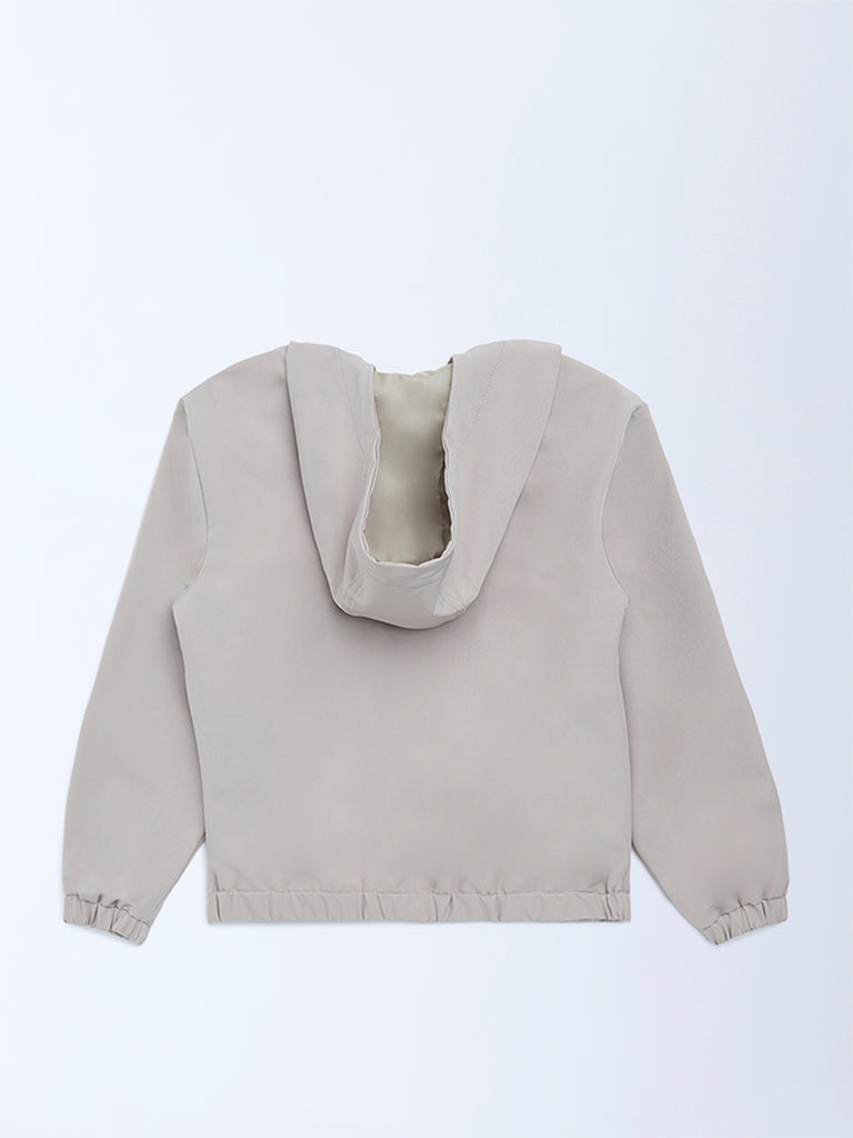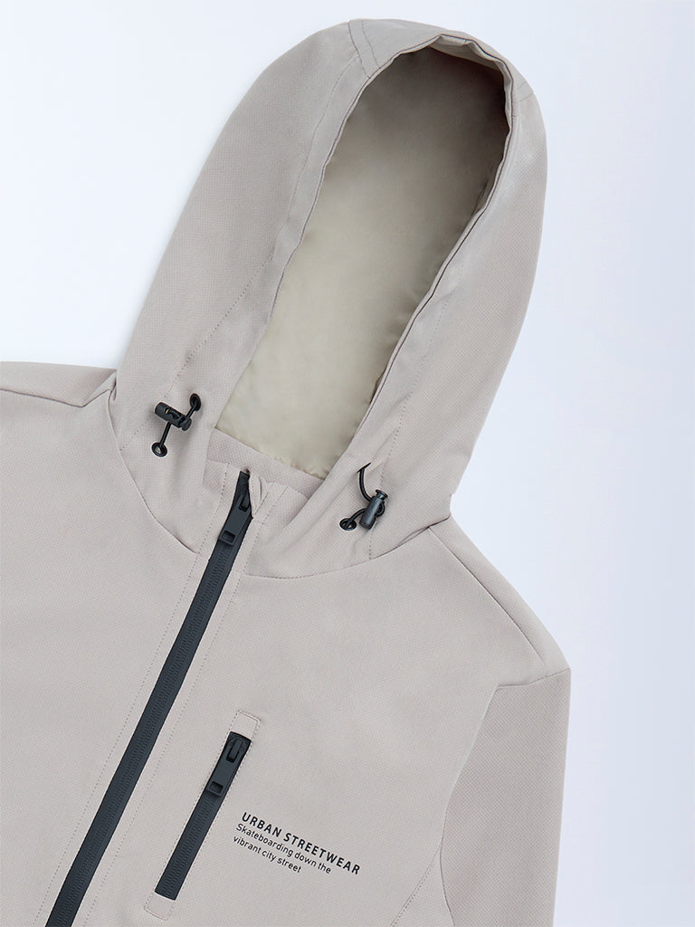 Y&F Kids Beige Text Detailed Hooded Jacket