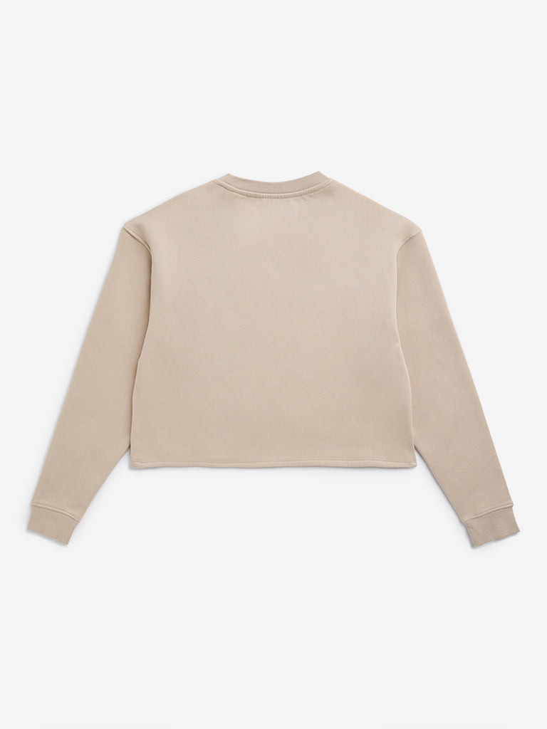 Y&F Kids Beige Text Print Cotton-Blend Sweatshirt