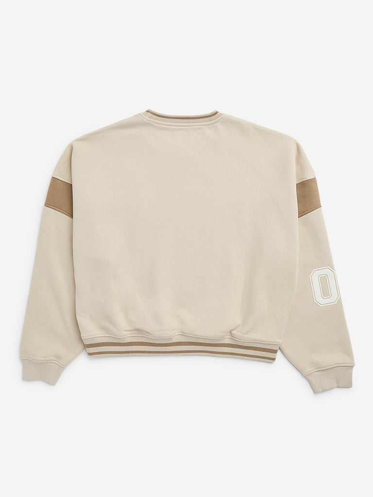 Y&F Kids Beige Text Printed Cotton-Blend Sweatshirt