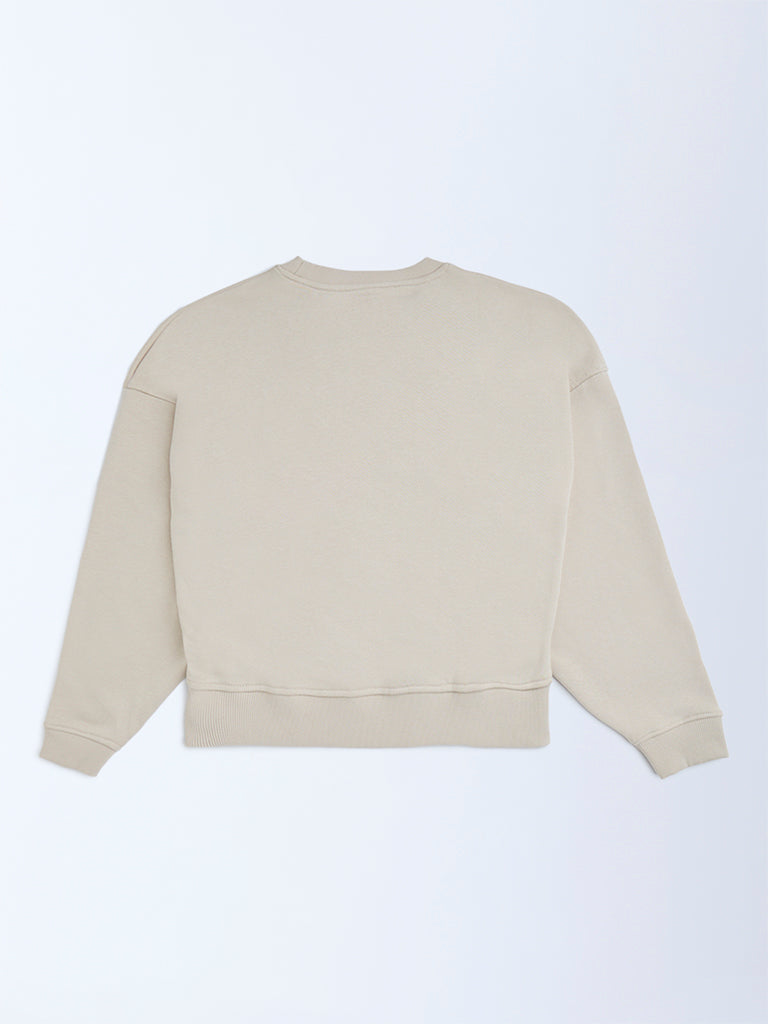Y&F Kids Beige Text-Printed Cotton Sweatshirt