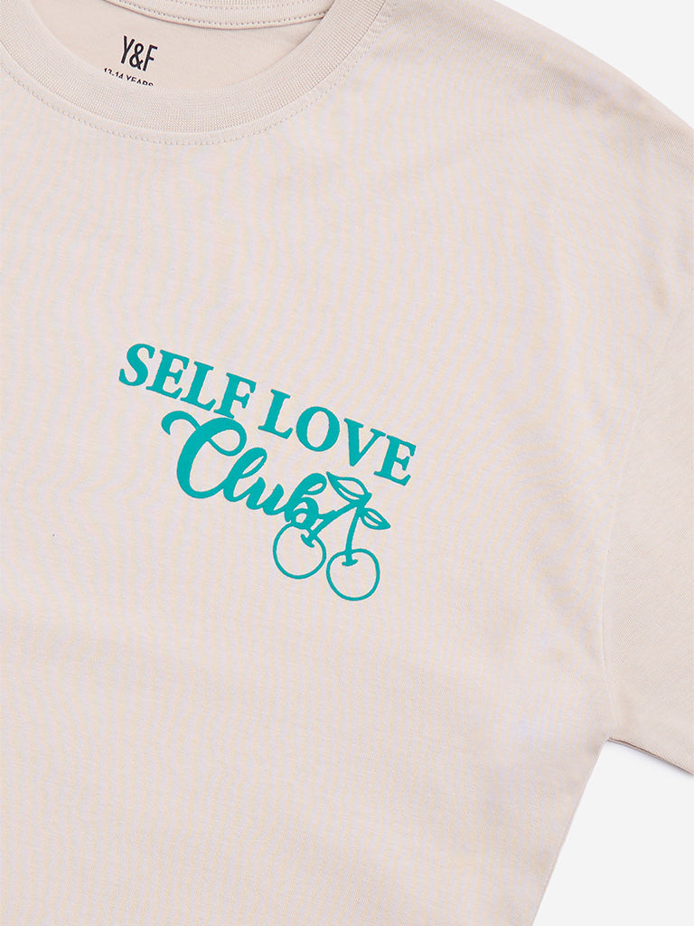 Y&F Kids Beige Typographic Design Cotton T-Shirt