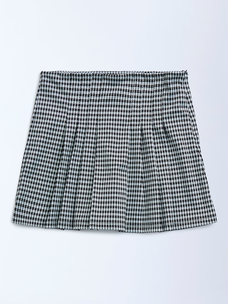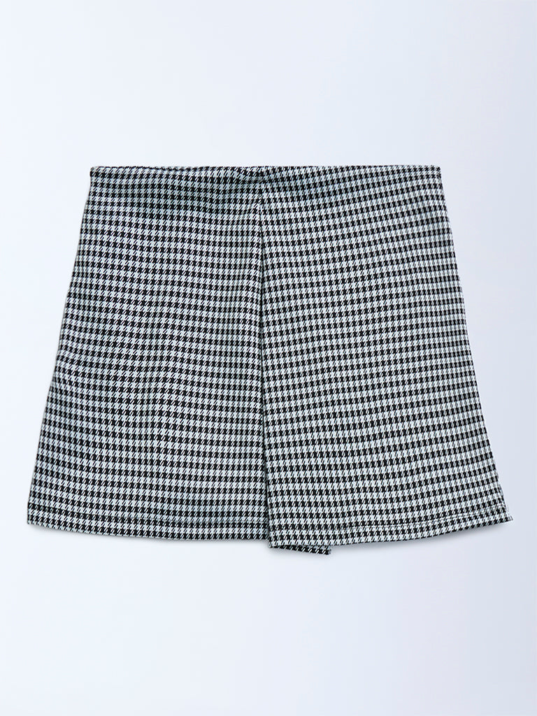 Y&F Kids Black Houndstooth Checkered High-Rise Skort