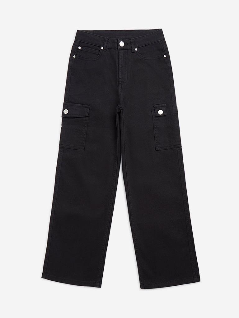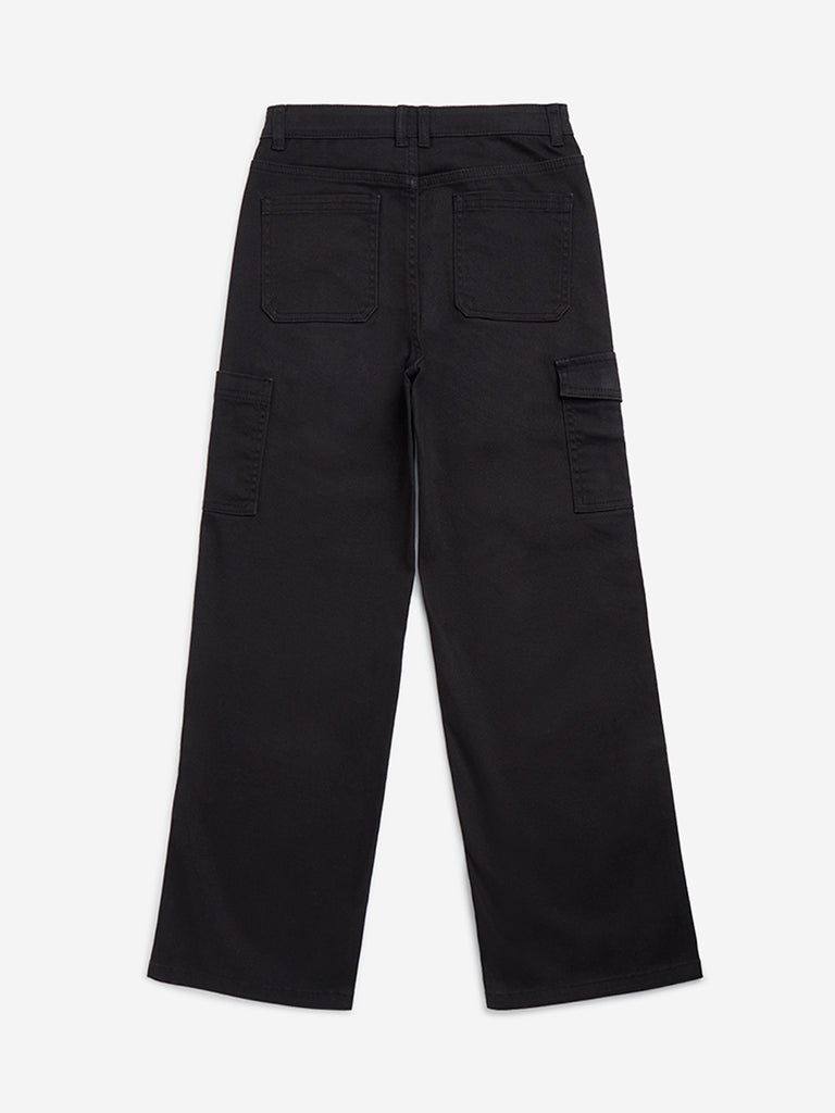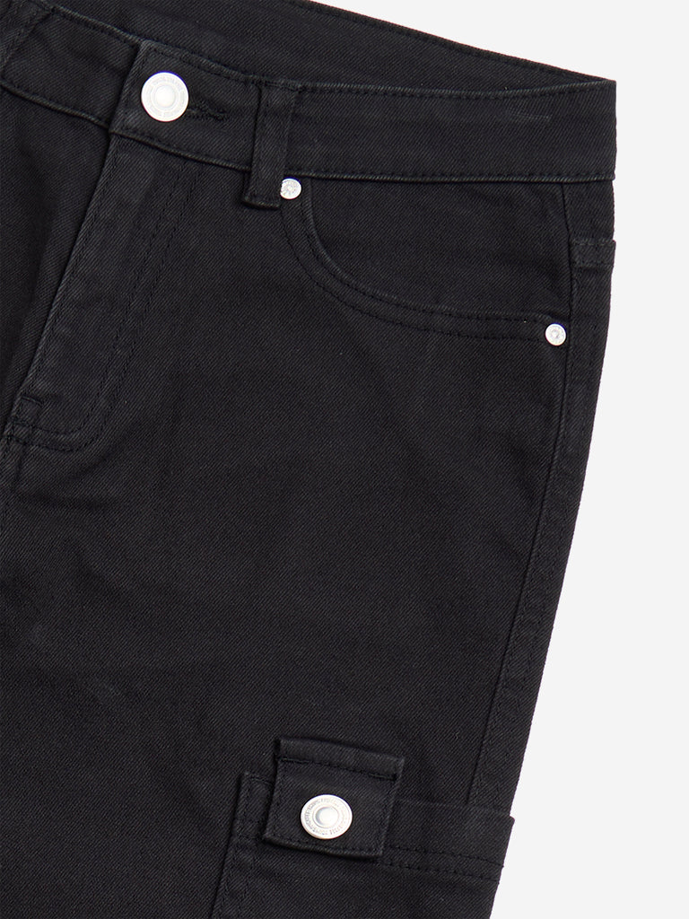 Y&F Kids Black Mid-Rise Cotton-Blend Cargo Trousers