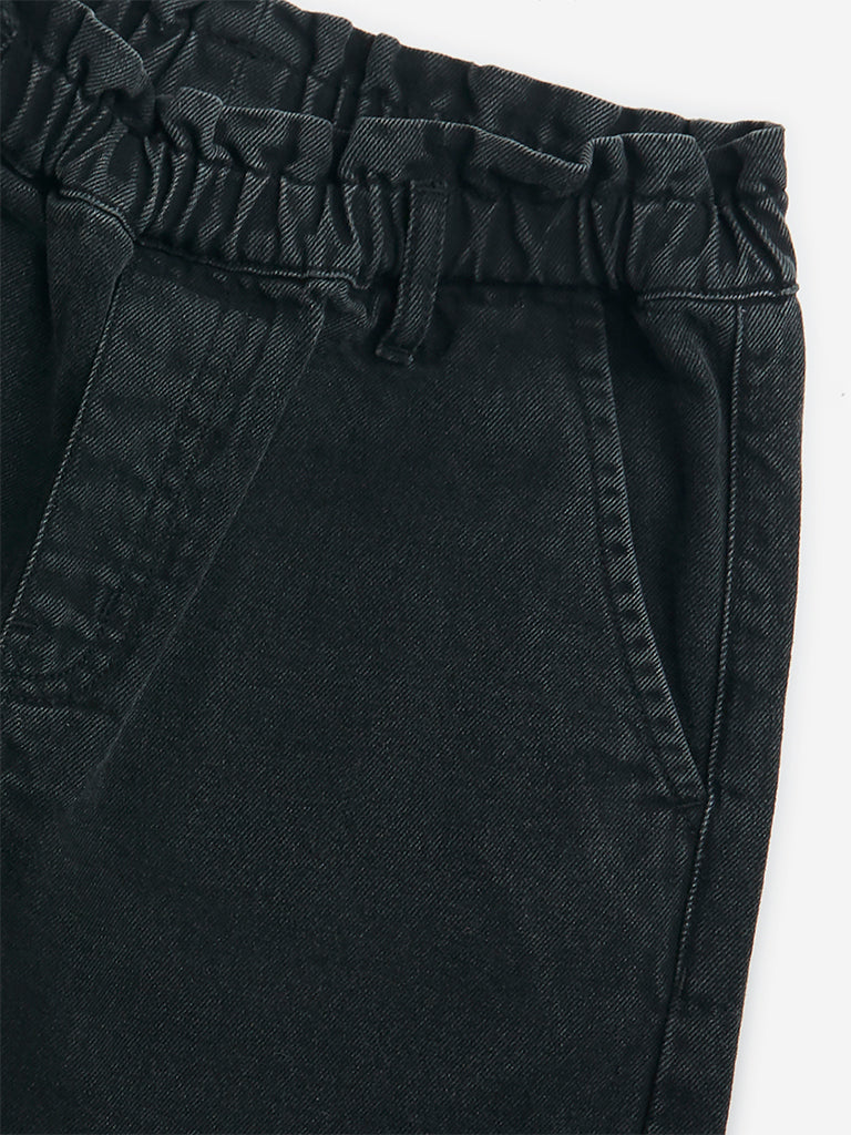 These black denim shorts by Y&F Kids are made from pure cotton for a comfortable and breathable fit. Featuring a high-rise silhouette. they are designed with a smooth elastic waistband accented with ruffle detailing. along with belt loops and multiple pockets for added style and functionality.