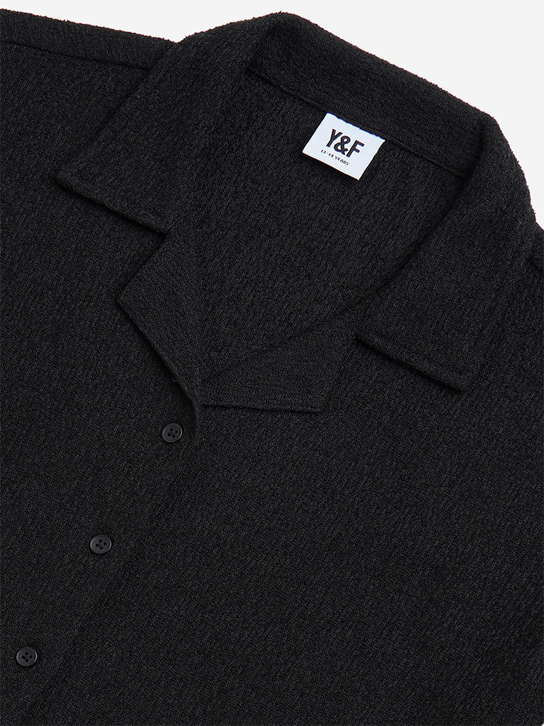 Y&F Kids Black Self-Textured Cotton-Blend Shirt