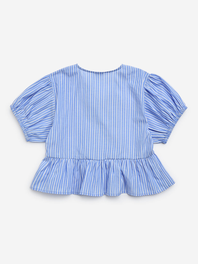 Y&F Kids Blue Stripe Printed Cotton-Blend Top