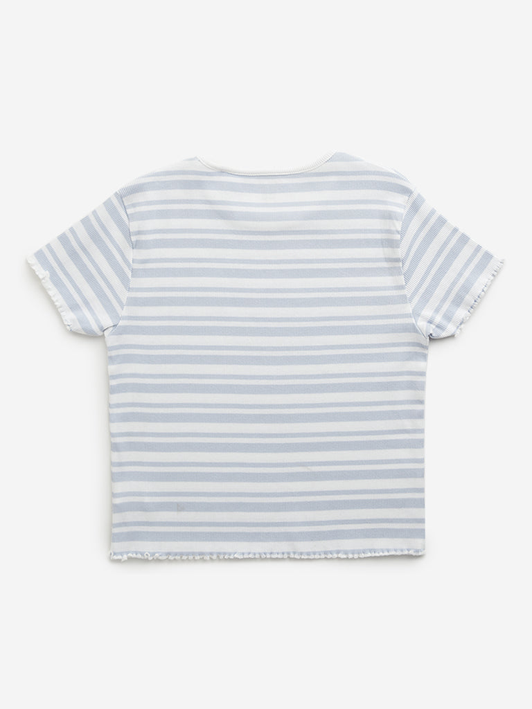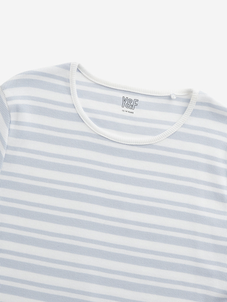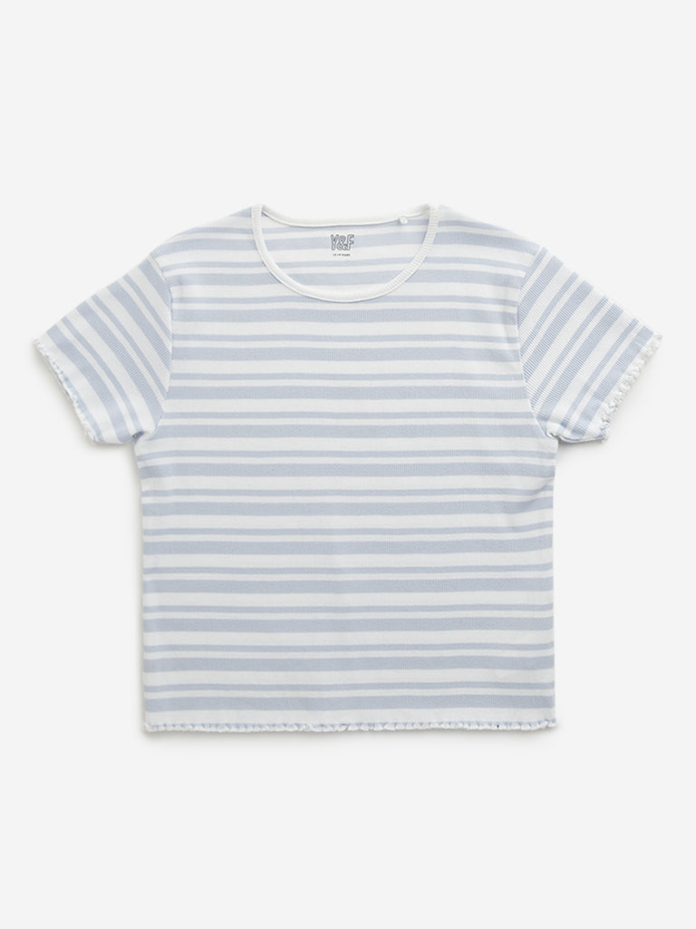 Y&F Kids Blue Stripe Printed Cotton T-Shirt