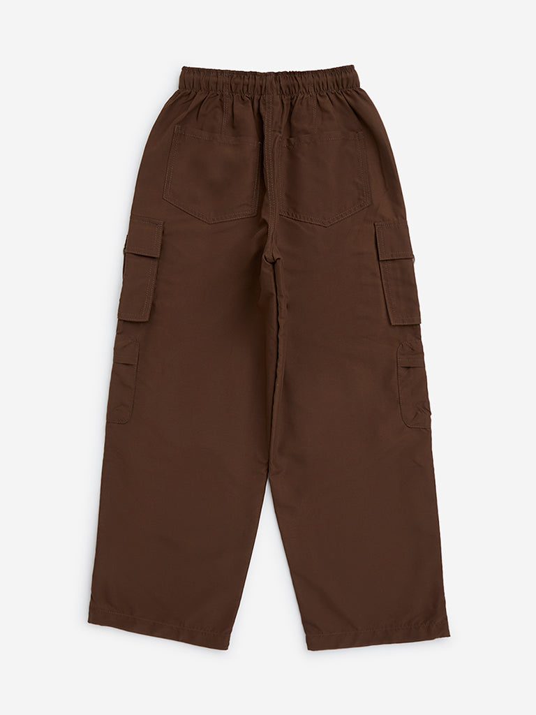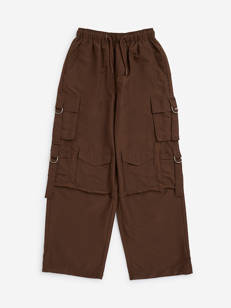 Y&F Kids Brown Cargo-Style High-Rise Trousers