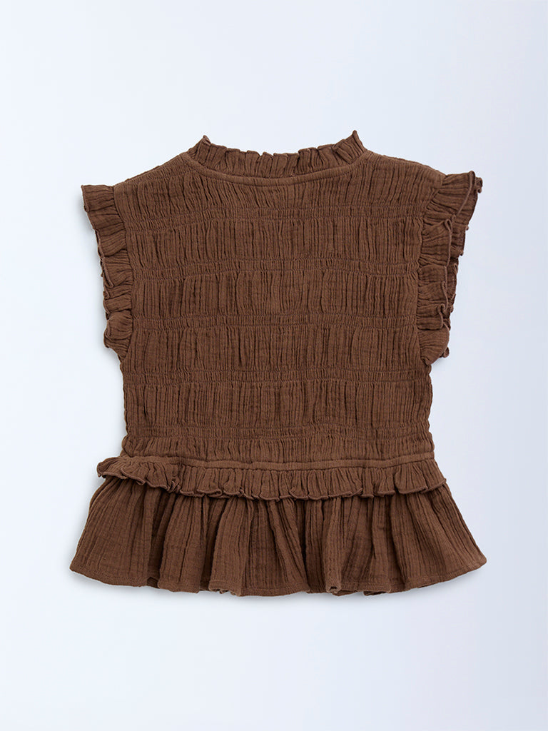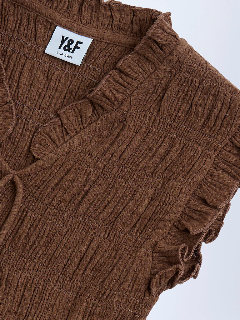 Y&F Kids Brown Smocked Cotton Top
