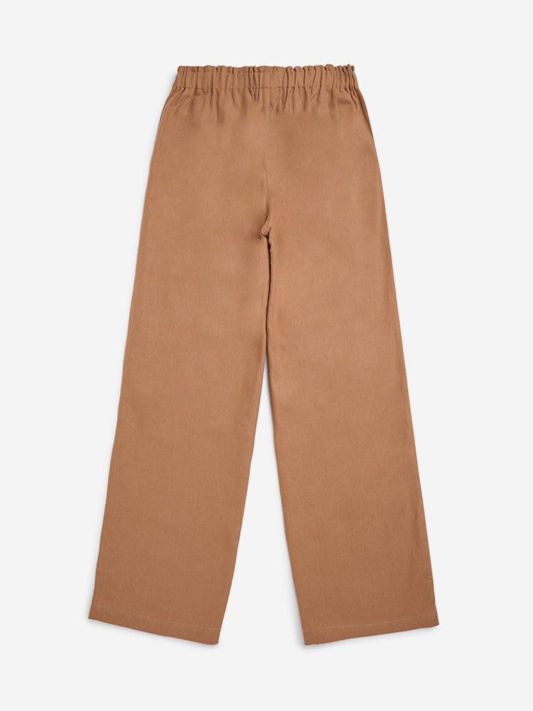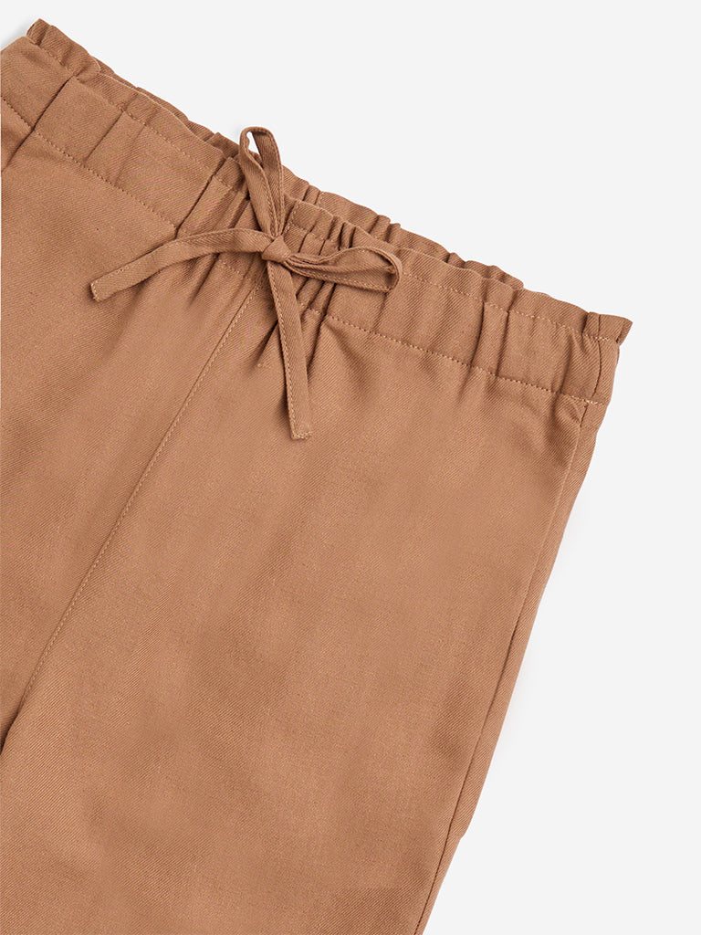 These brown trousers by Y&F Kids are crafted in a cotton-rich blend. Offering a high-rise fit. the bottom wear carries a smooth ruffled waistband. adjustable drawstrings and side pockets.