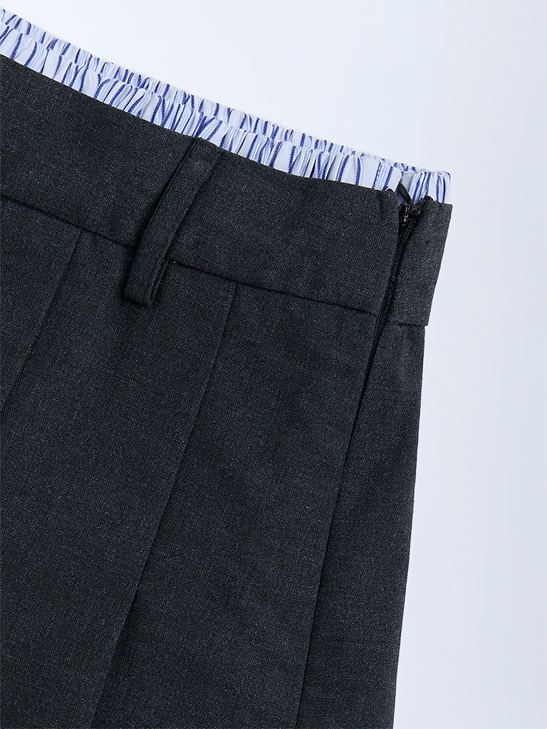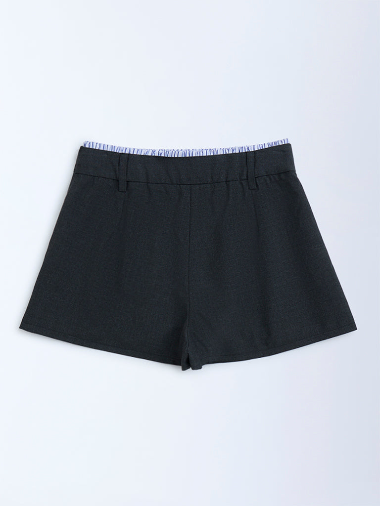 Y&F Kids Charcoal Box Pleated High-Rise Skorts