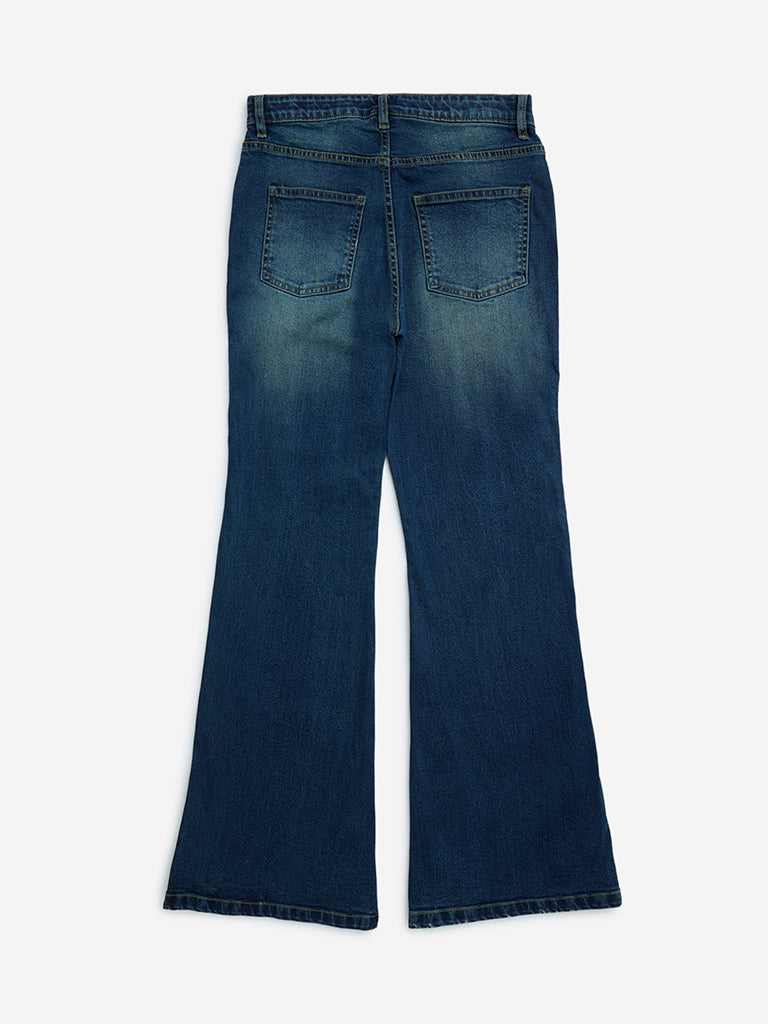Y&F Kids Dark Blue Bootcut High-Rise Jeans