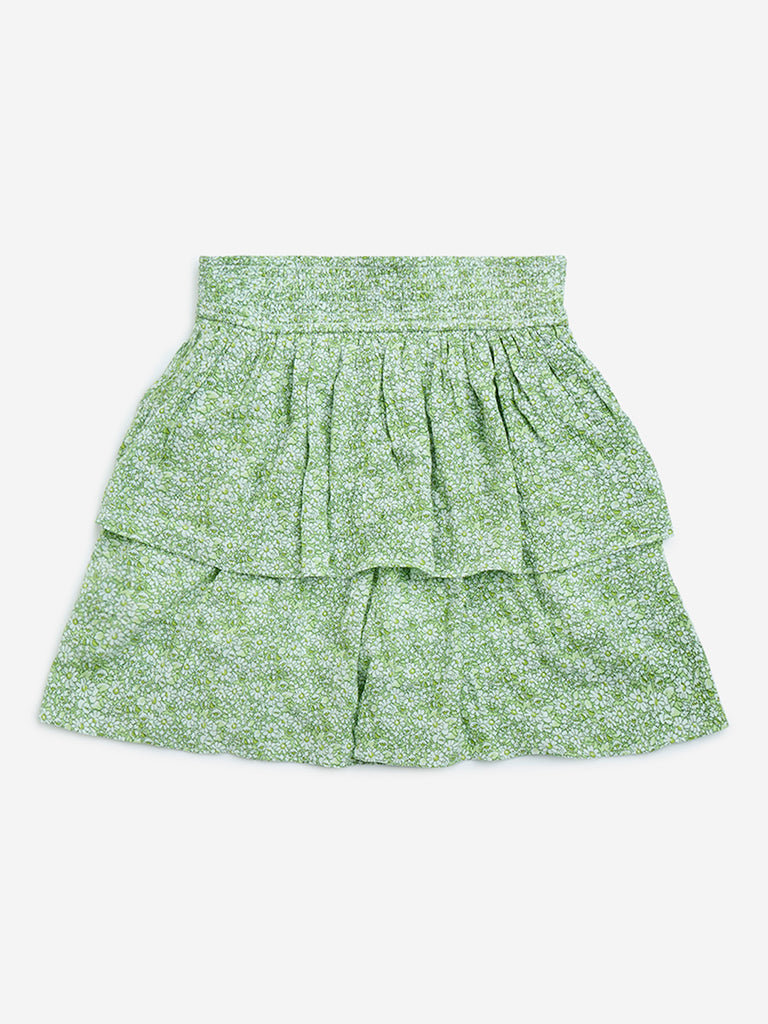 Y&F Kids Green Floral Printed High-Rise Skirt