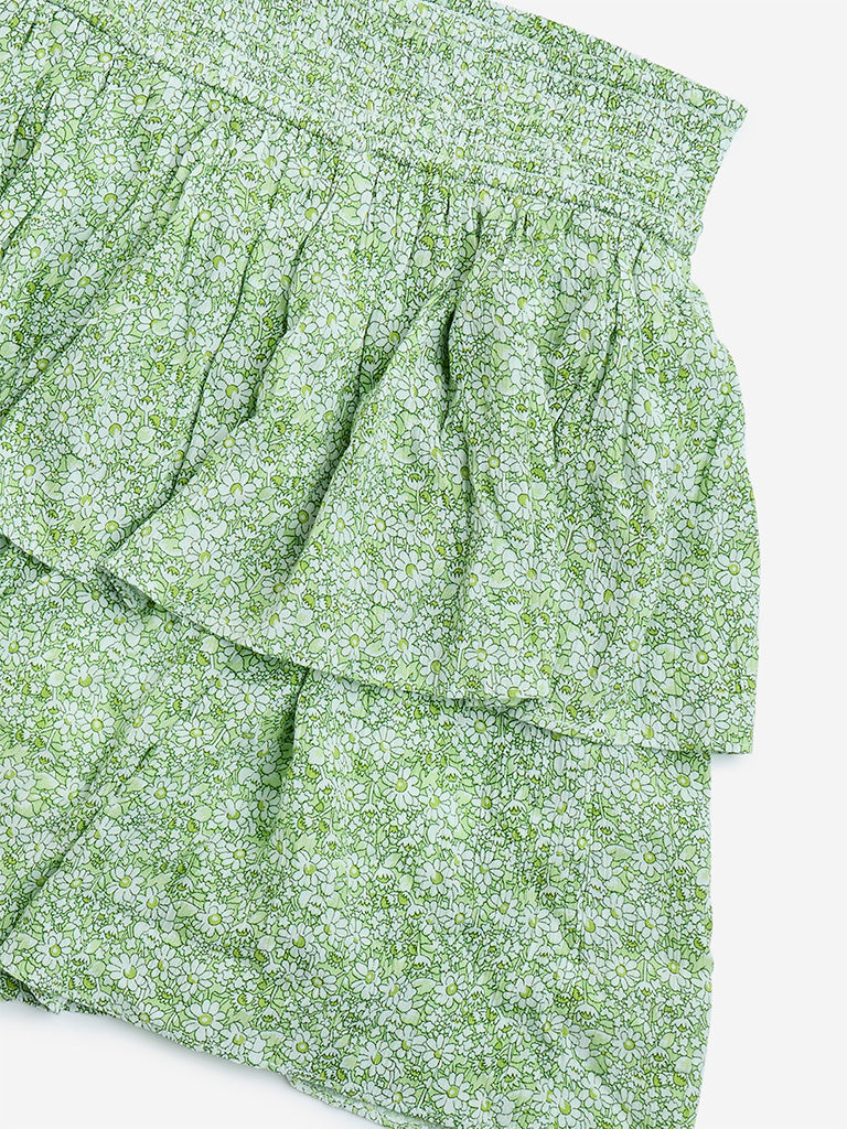 This green skirt from Y&F Kids is decked with charming floral motifs that add a playful touch. Made from quality fabric in a tiered silhouette. it features a smocked waistband for a snug fit. and built-in shorts to ensure comfort and ease of movement.